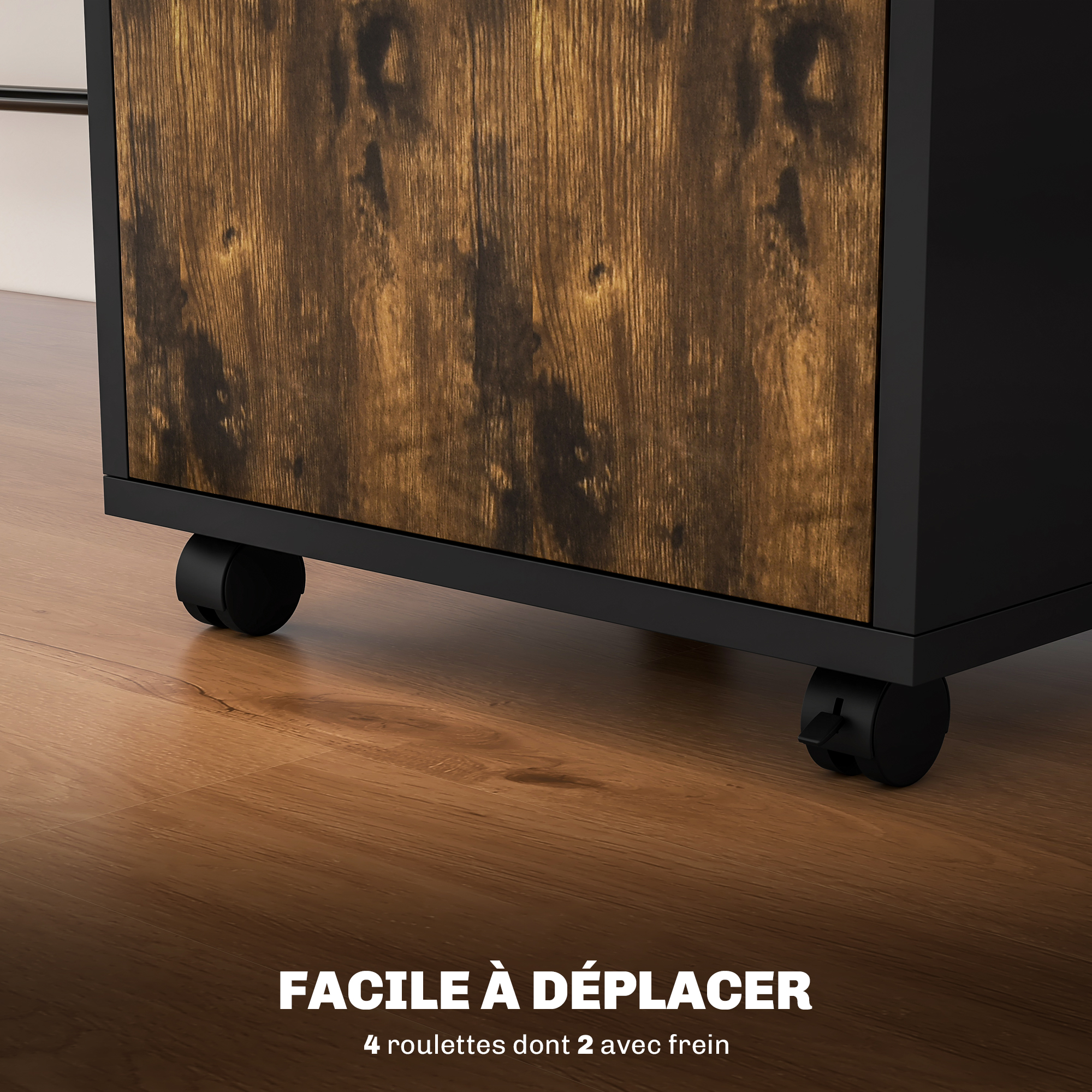 Caisson de bureau rangement bureau sur roulettes tiroir placard niche panneaux particules noir bois