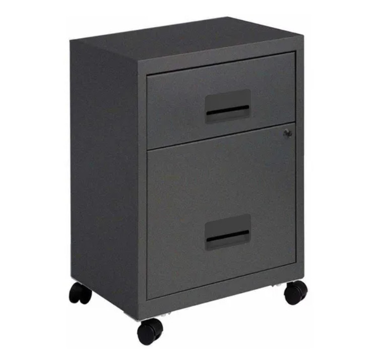 Caisson sur roulettes en métal H 57cm Flavio 2 tiroirs - Compact et élégant-Couleur Anthracite