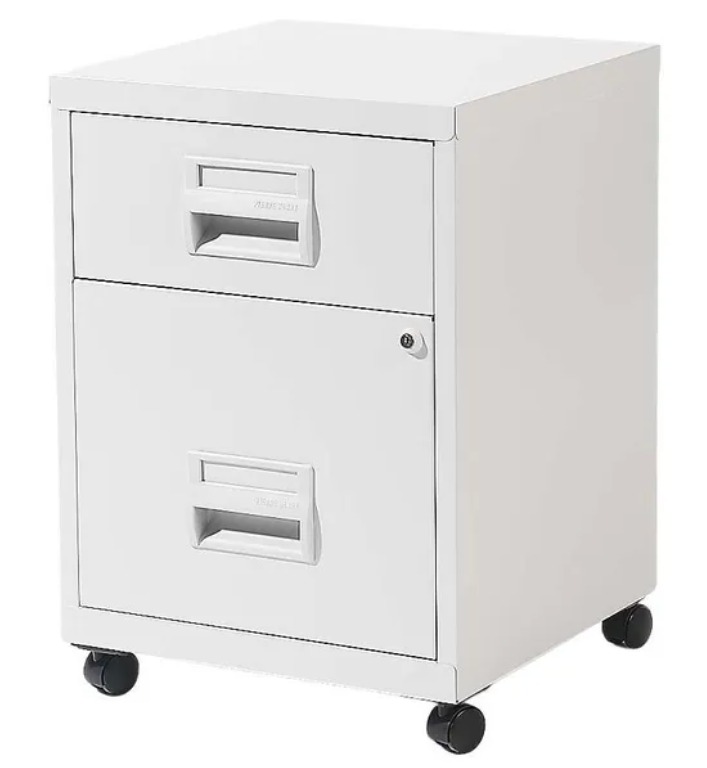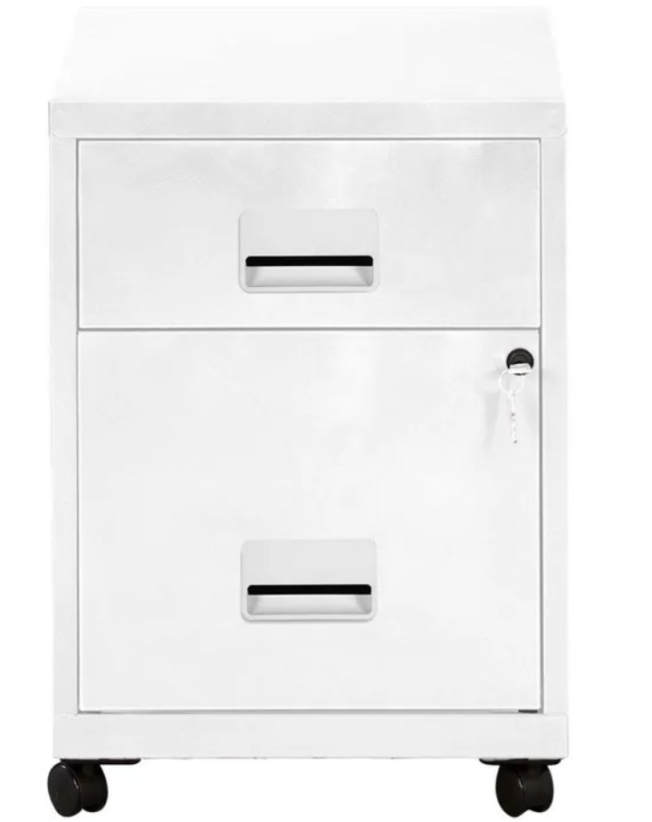Caisson sur roulettes en métal H 57cm Flavio 2 tiroirs - Compact et élégant-Couleur Blanc