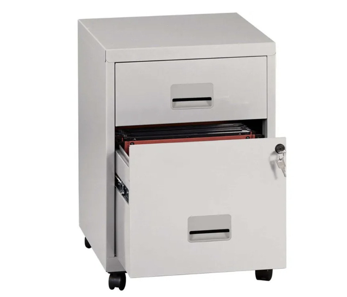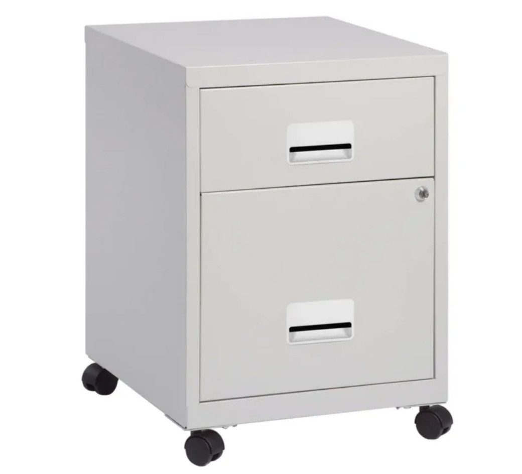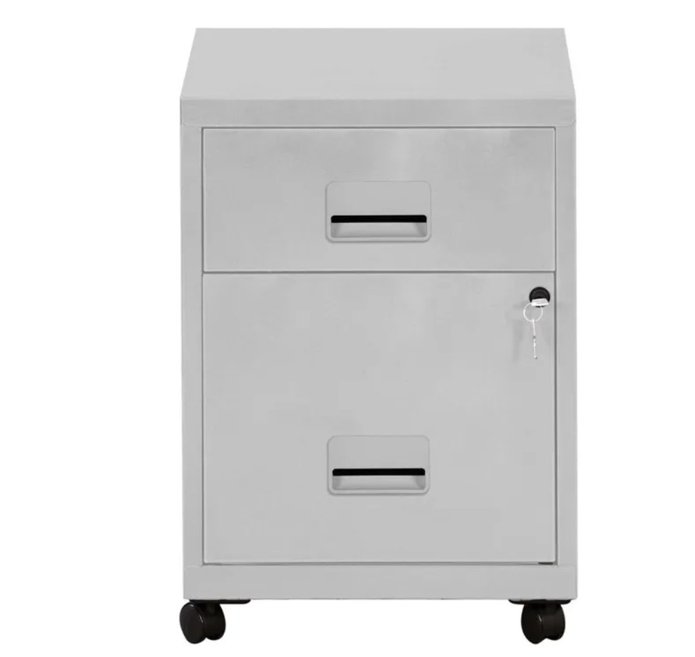 Caisson sur roulettes en métal H 57cm Flavio 2 tiroirs - Compact et élégant-Couleur Gris clair