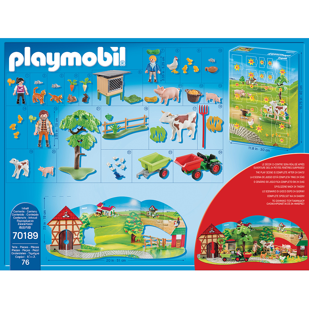 | Plus produit | - il lui faudra patienter jusqu\'à Noël Les calendriers de lAvent PLAYMOBIL avec 24 fenêtres prémontées pour créer une mise en scène complète jusquà Noël \n- Reconstitue une véritable ferme avec des animaux et la famille qui s\'en occupe |