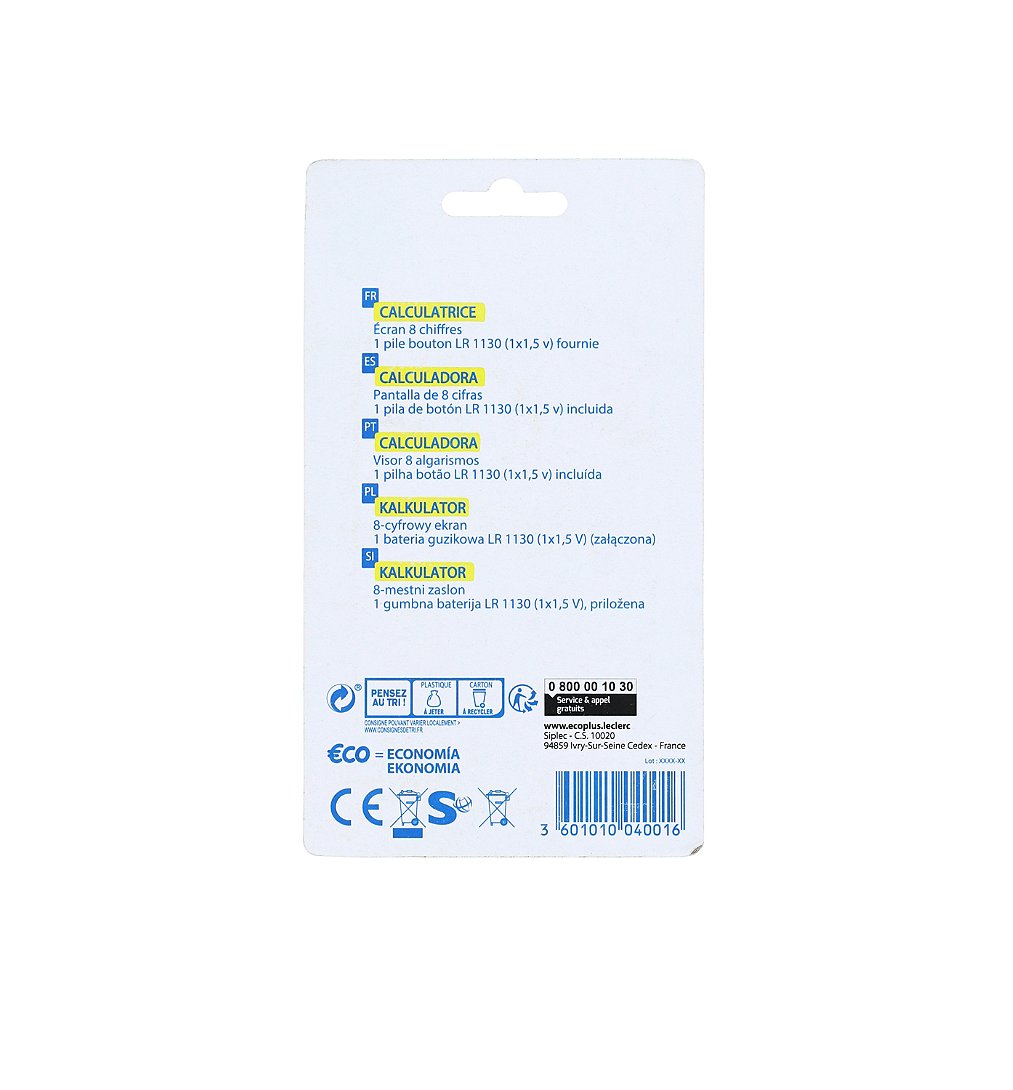 | Libellé | Calculatrice 8 chiffres - Eco+ |