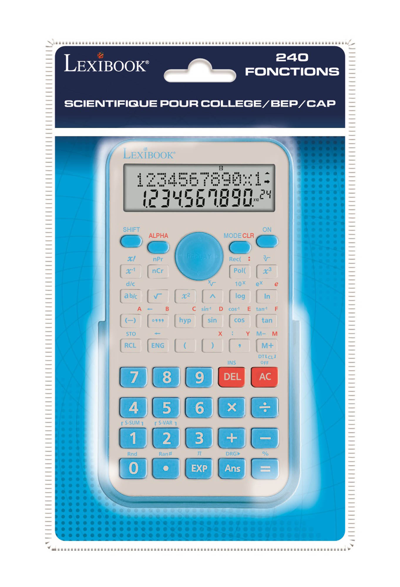 * La calculatrice scientifique 240 fonctions sp�cialement con�ue pour les �tudiants en classes de coll�ge de la 6e � la 3e, BEP, CAP et les usages uniiversitaires, bureau et post scolaires ! * �cran 2 lignes avec affichage des op�rations. 4 fl�ches de navigation pour corriger ou modifier les calculs. * Calcul et affichage des fractions propre ou impropre. Calcul des pourcentages. * Fonctions scientifiques : p, trigonom�triques (cos, sin, tan), hyperboliques (cosh, sinh et tanh), logarithmiques (log, ln, ex) et leurs fonctions inverses. * Fonctions carr�, racine carr�e, cubique, racine cubique, racine xi�me. * Calcul de factorielle (n!), al�atoire, permutation et combinaison. * Calculs en base 2, 8 et 16 avec op�rations logiques (AND, OR, XOR, XNOR, NOT). * Statistiques � 1 variable : calcul de l'effectif total (n), moyenne(x), �carts-types (sn-1,sn), sommes (Sx�, Sx ). * Conversions: entre degr�s /radians / grades et coordonn�es rectangulaires / polaires. * Ultra-Confortable et robuste