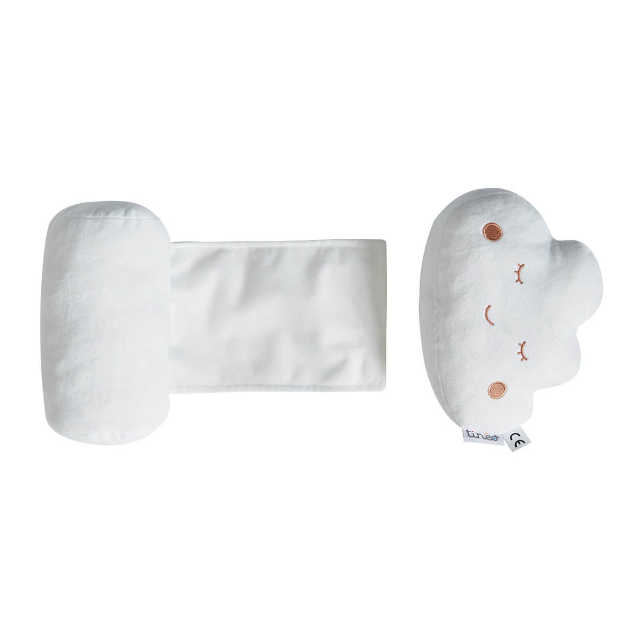 Le cale-bébé Cloudy de Tinéo est un accessoire de sommeil 2 en 1, il permet à la fois de positionner bébé sur le dos pendant son sommeil et d'offrir une adorable peluche à bébé. Le cale-bébé Cloudy de Tinéo est un accessoire de sommeil très pratique car peut s'utiliser de 2 façons.Fonction cale-BébéIl permet de maintenir bébé en position >, position recommandée par les professionnels de santé, afin qu'il ne puisse pas se retourner pendant son sommeil. Il s'ajuste à la morphologie de bébé grâce à sa bande agrippante.Fonction pelucheLe cale bébé Cloudy se détache et devient une véritable peluche en forme de nuage pour bébé.