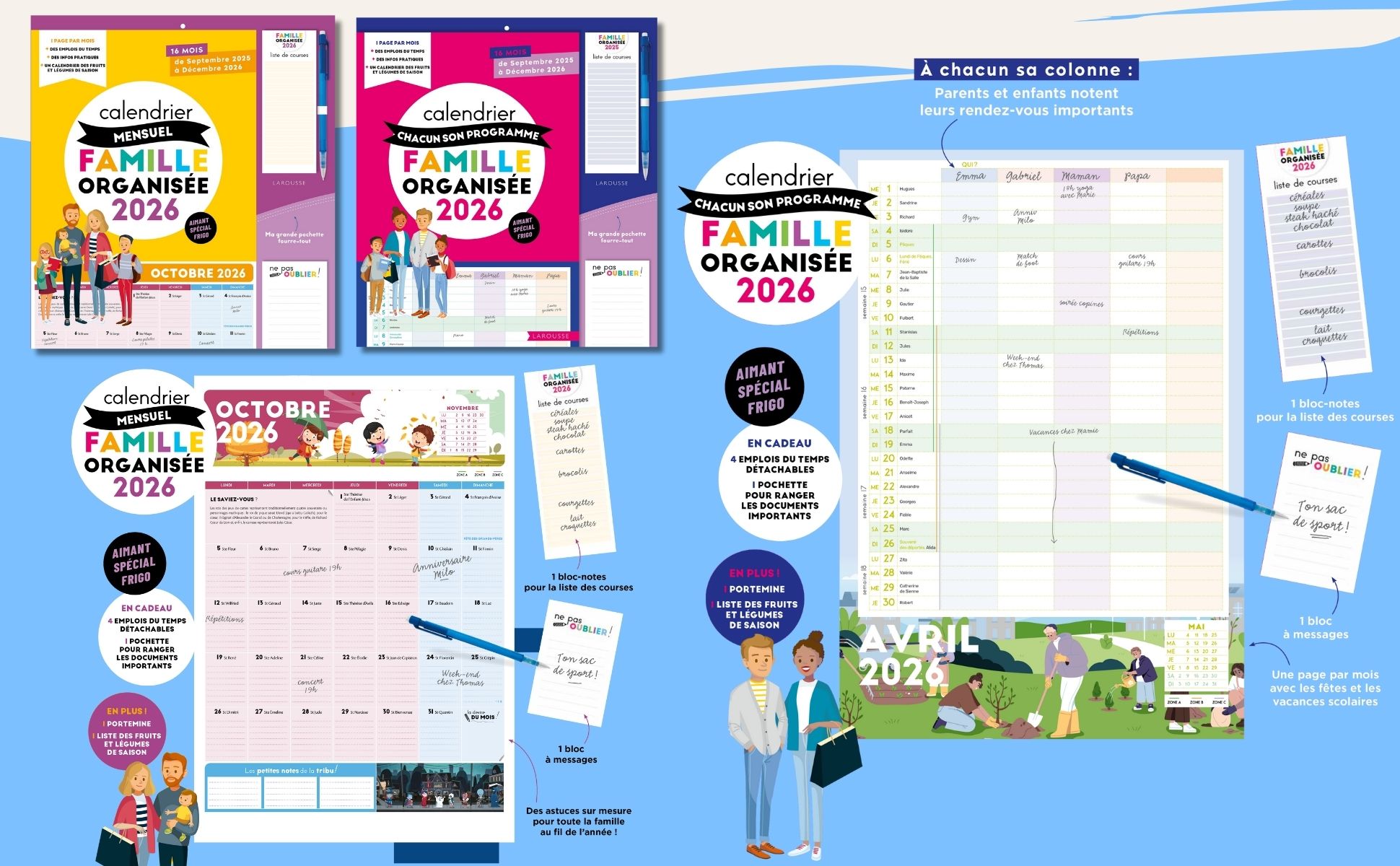 • 4 emplois du temps détachables