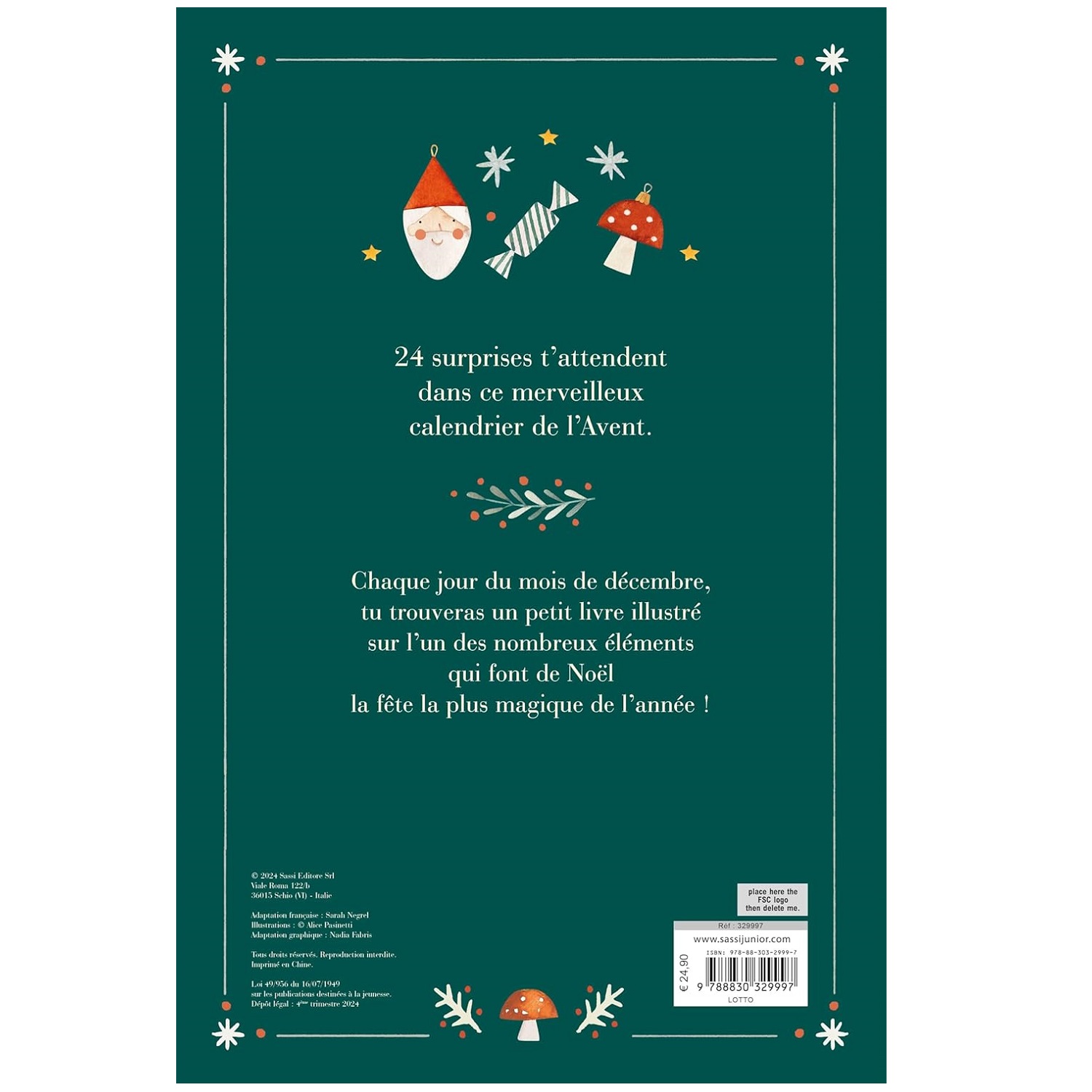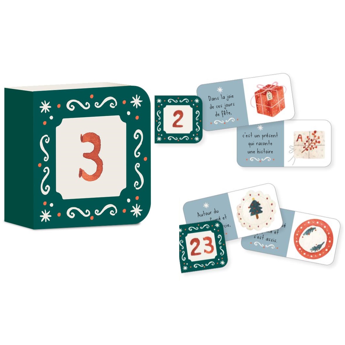 Vivez toute l’émotion de l’Avent en rythmant les journées avec ces 24 petites livres. Chaque jour, du 1° au 24 décembre, vous trouverez un petit livre illustré consacré à l’un des nombreux éléments qui font de Noël la période la plus magique de l’année.