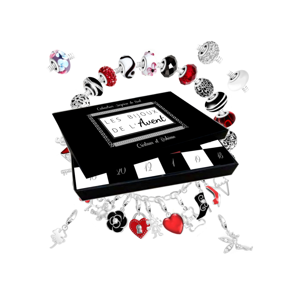 Cet unique Calendrier de l'Avent dédié exclusivement aux Bijoux de la marque SC Crystal est composé de 23 charms et 1 bracelet porte charms. C'est un magnifique et original cadeau à offrir, ou à s'offrir, pour rendre encore plus magique les 24 jours qui précèdent Noël.