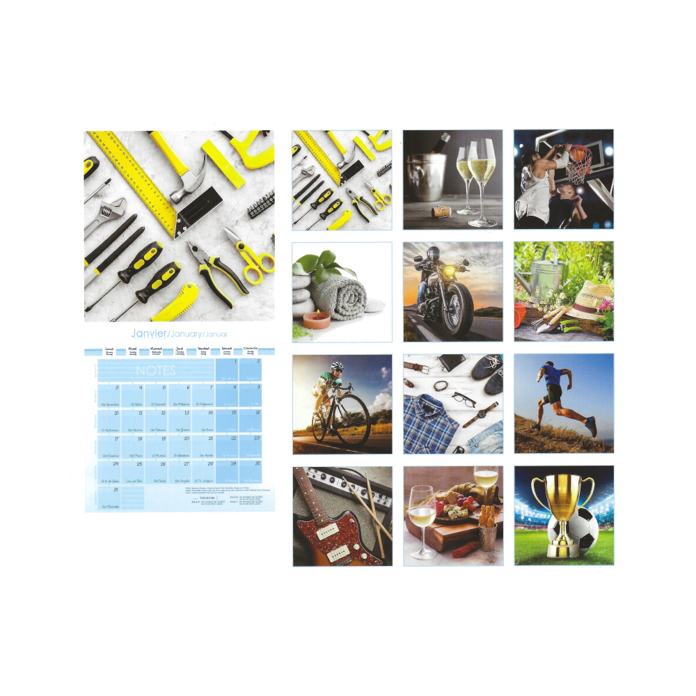 Calendrier Mural Mensuel 2022 - 12 Mois - 16.5 x 16.5 cm - Masculin