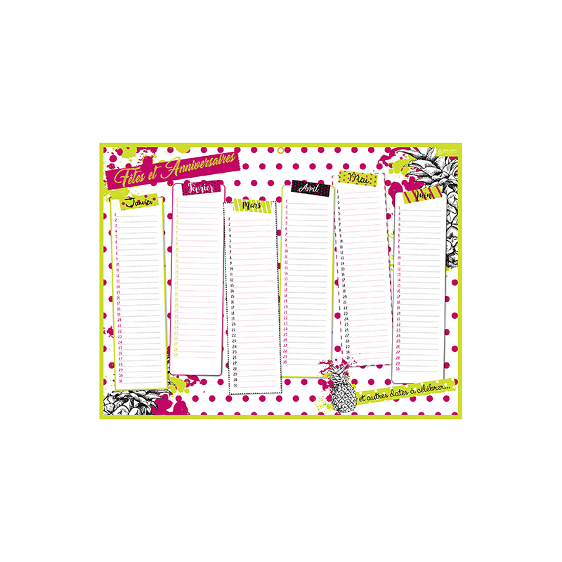 • Le calendrier perpétuel vous permettra d'écrire et de réécrire les différentes dates d'anniversaires de vos proches ainsi que les fêtes à célébrer. Ainsi, vous n'oublierez plus jamais de souhaiter l'anniversaire de quelqu'un