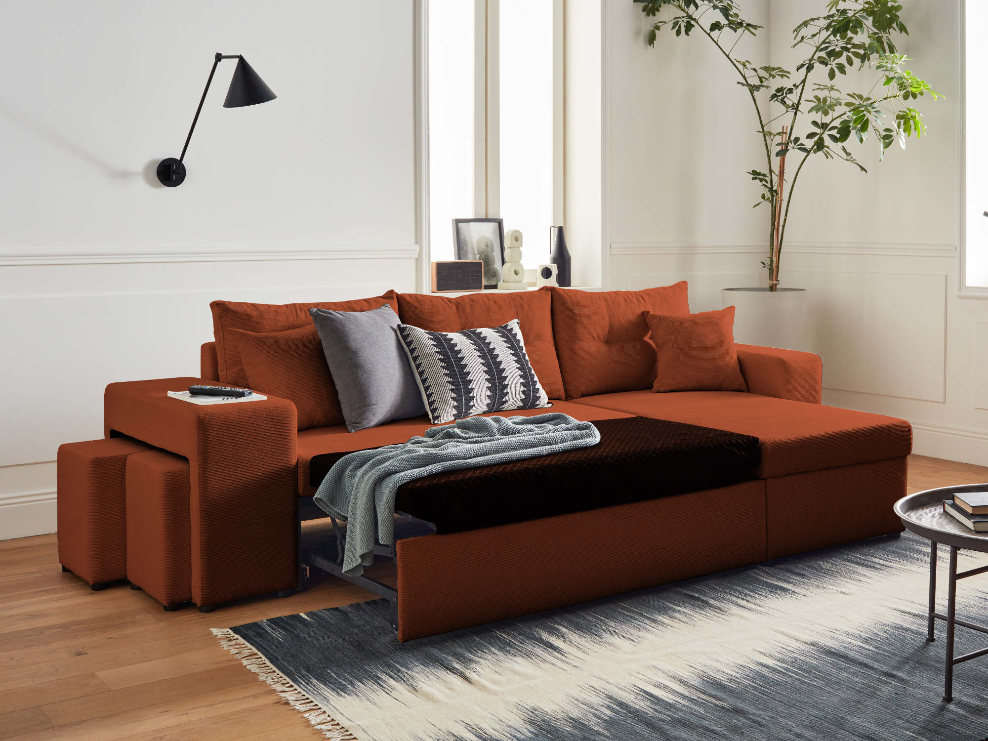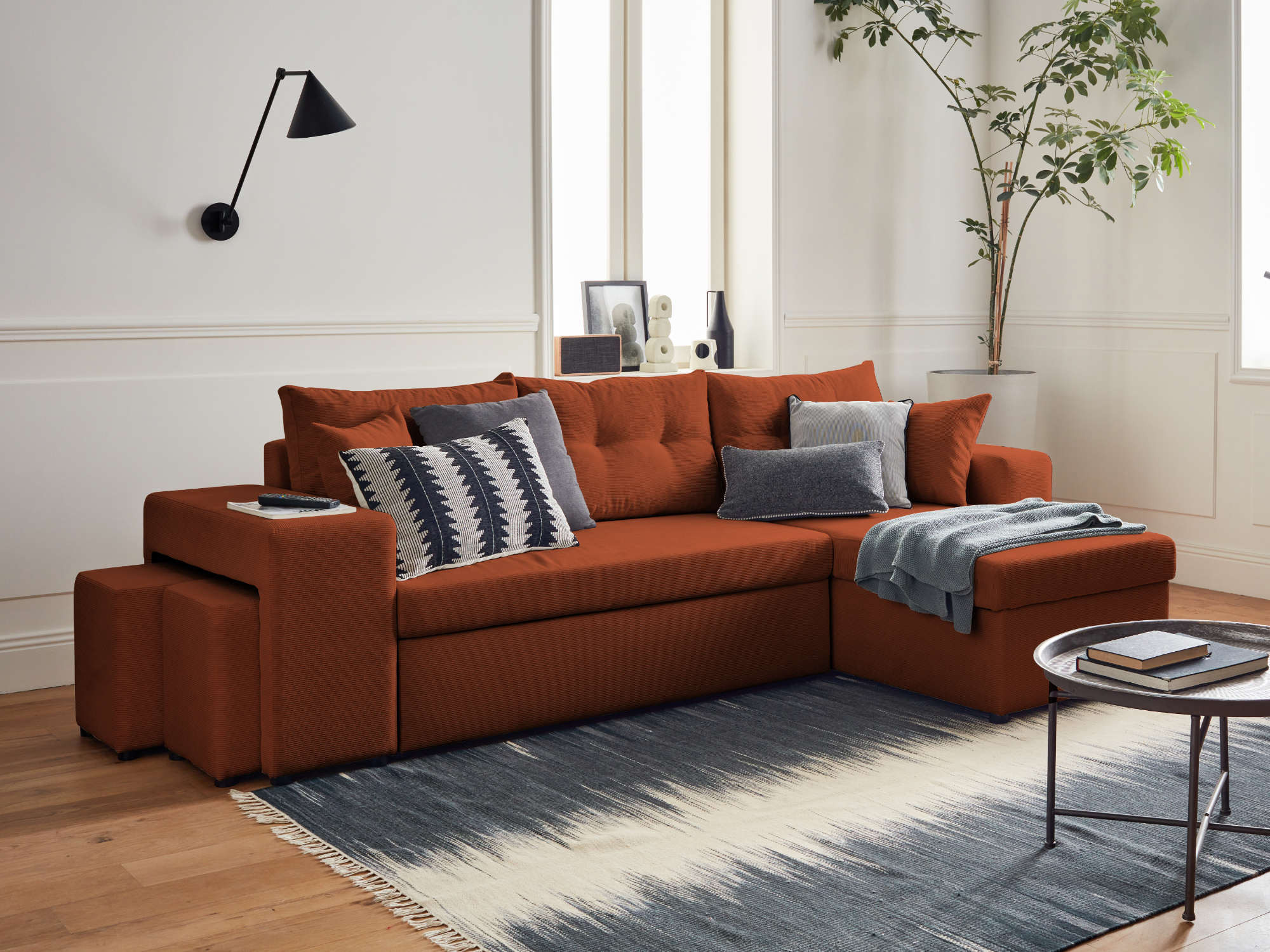 Enfin, le canapé d’angle California est également modulable grâce à ses deux poufs rangés sous l’autre accoudoir, idéal pour recevoir vos convives.