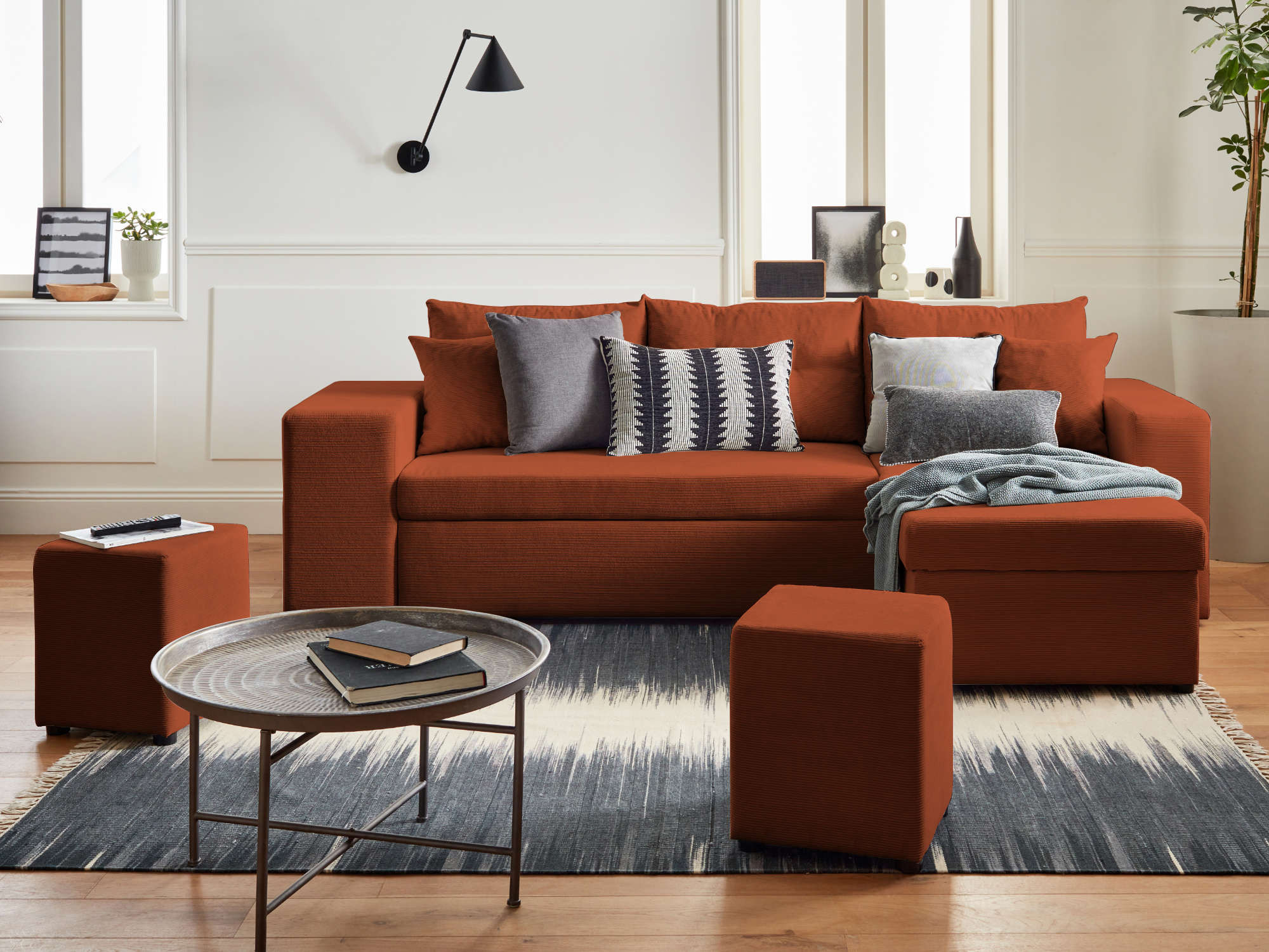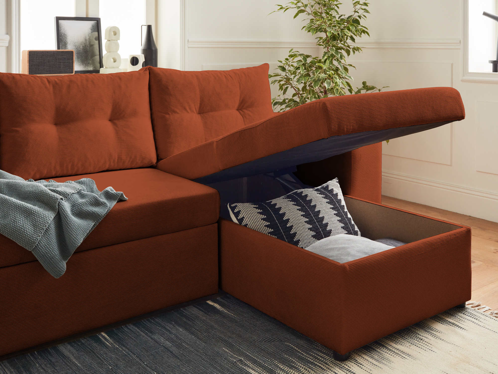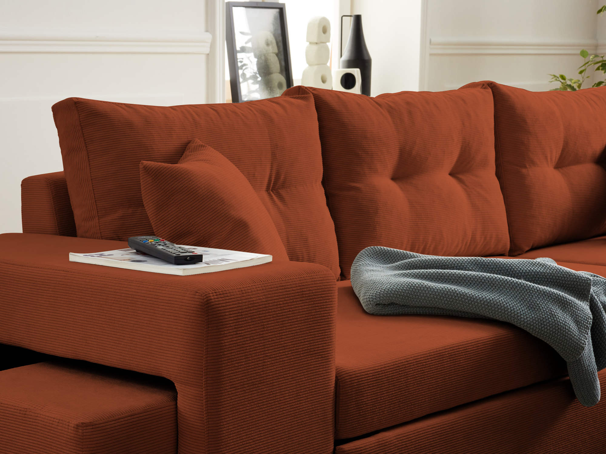 California - canapé d'angle réversible convertible - avec coffre, tablette et poufs - en velours côtelé -