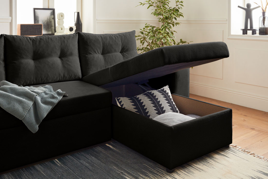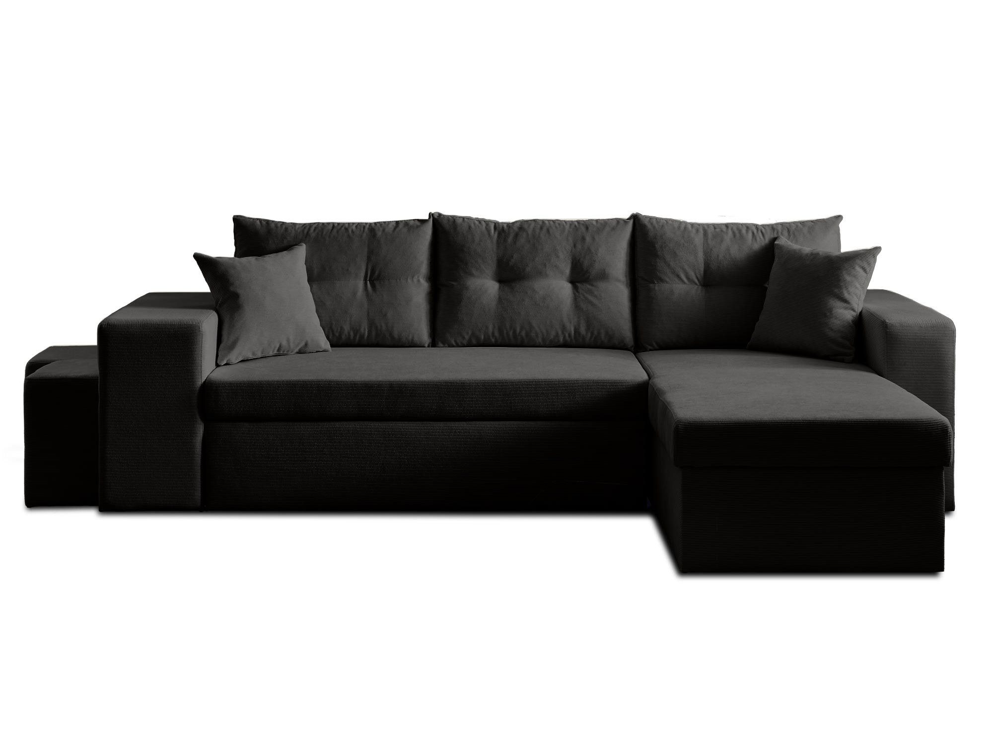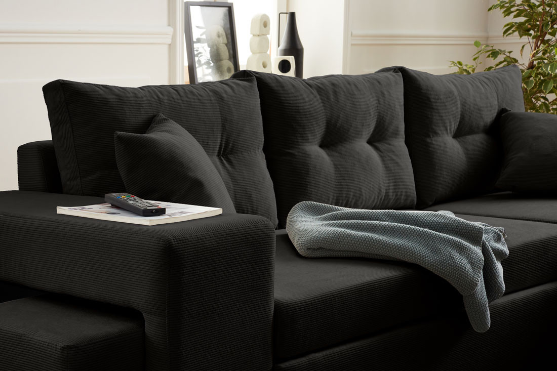California - canapé d'angle réversible convertible - avec coffre, tablette et poufs - en velours côtelé -