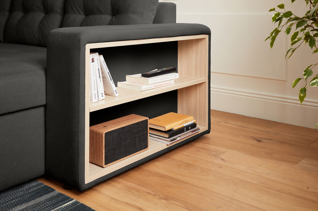Grâce à sa fonction réversible, la méridienne de ce canapé d’angle peut se placer à gauche ou à droite et s’adapte ainsi à toutes vos envies d’aménagement. De plus, le canapé California est équipé d’un coffre de rangement situé sous sa méridienne et d'une tablette de rangement en bois intégrée dans un de ses accoudoirs. Ce canapé est également doté d’une fonction convertible vous offrant ainsi un espace de couchage occasionnel de 194x130 cm.