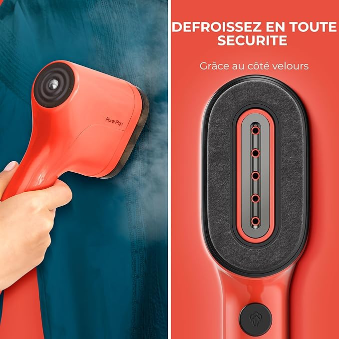 Rejoignez le mouvement : découvrez Pure POP de Calor, un défroisseur qui défroisse tous vos vêtements où que vous soyez. Cette solution portable pour entretenir le linge est très intuitive, offrant un soin complet en un seul geste simple et naturel. Le système exclusif de tête réversible velours et anti-peluches est simple d'utilisation, tandis que le design fin et ultra-compact permet d'emporter l'appareil partout avec vous ! Avec Pure POP, révolutionnez l'entretien du linge, avec une touche de couleur vive en plus.