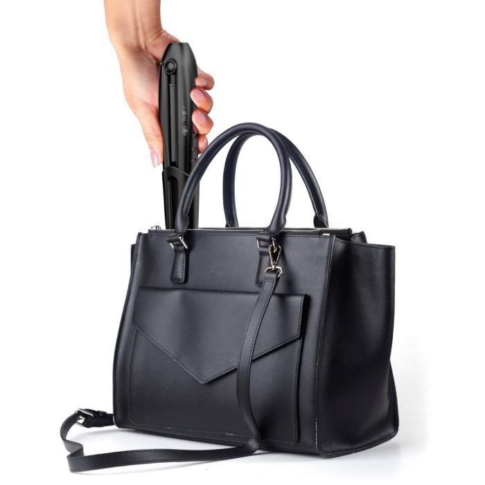 CALOR FOR ELITE Lisseur sans fil Nomad - 2 niveaux de température : de 160 a 200°C - plaques céramique 15 x 65 mm - boucle et lissage absolu - temps de chauffe 3 min - arret automatique 15 min - embout thermo-protecteur - fonction chargeur de téléphone - câble USB et adapteur fournis - 25 min d'autonomie