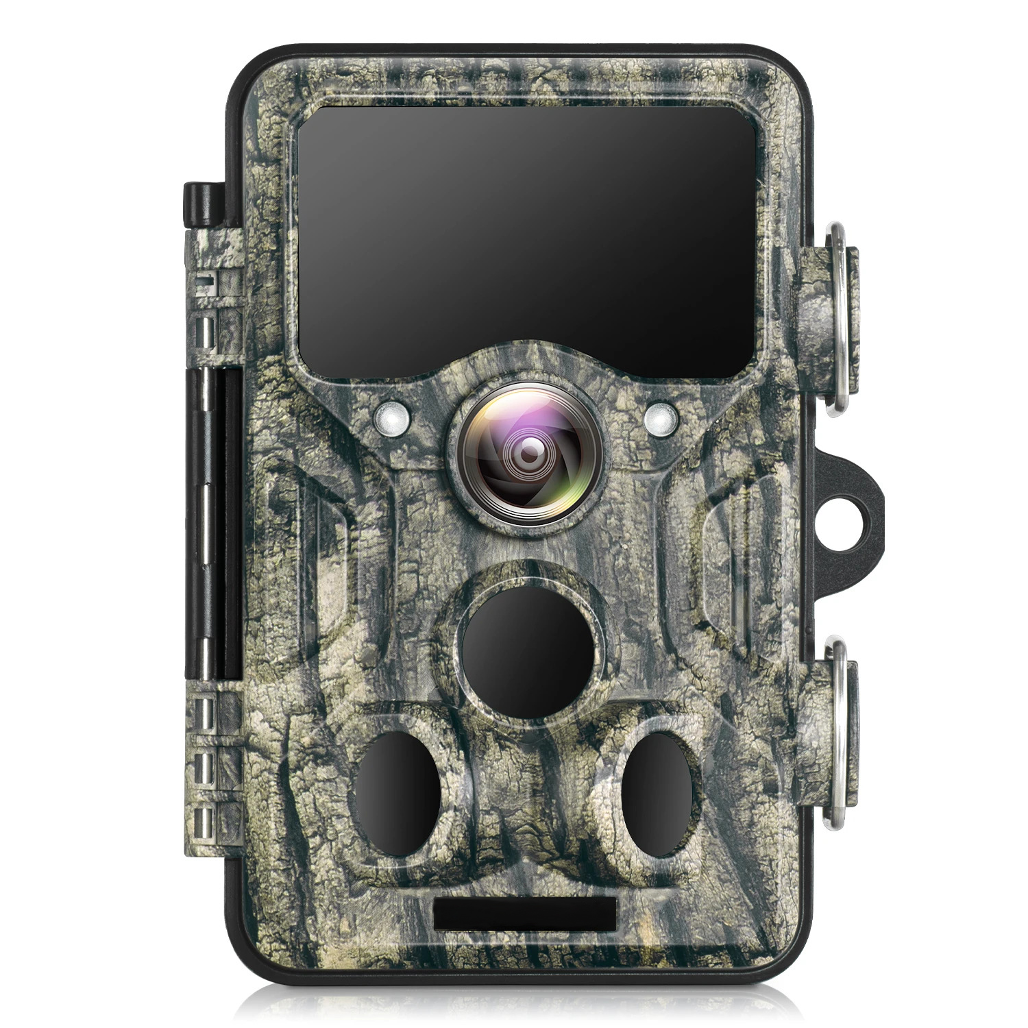 Cette caméra de chasse est dotée de nombreux ports et connectivité, tels qu'un port de carte SD pour stocker vos enregistrements, une connectivité en Bluetooth et Wifi pour recevoir des notifications via l'application mobile Android/iOS lorsqu'un mouvement est détecté avec une image à l'appui.