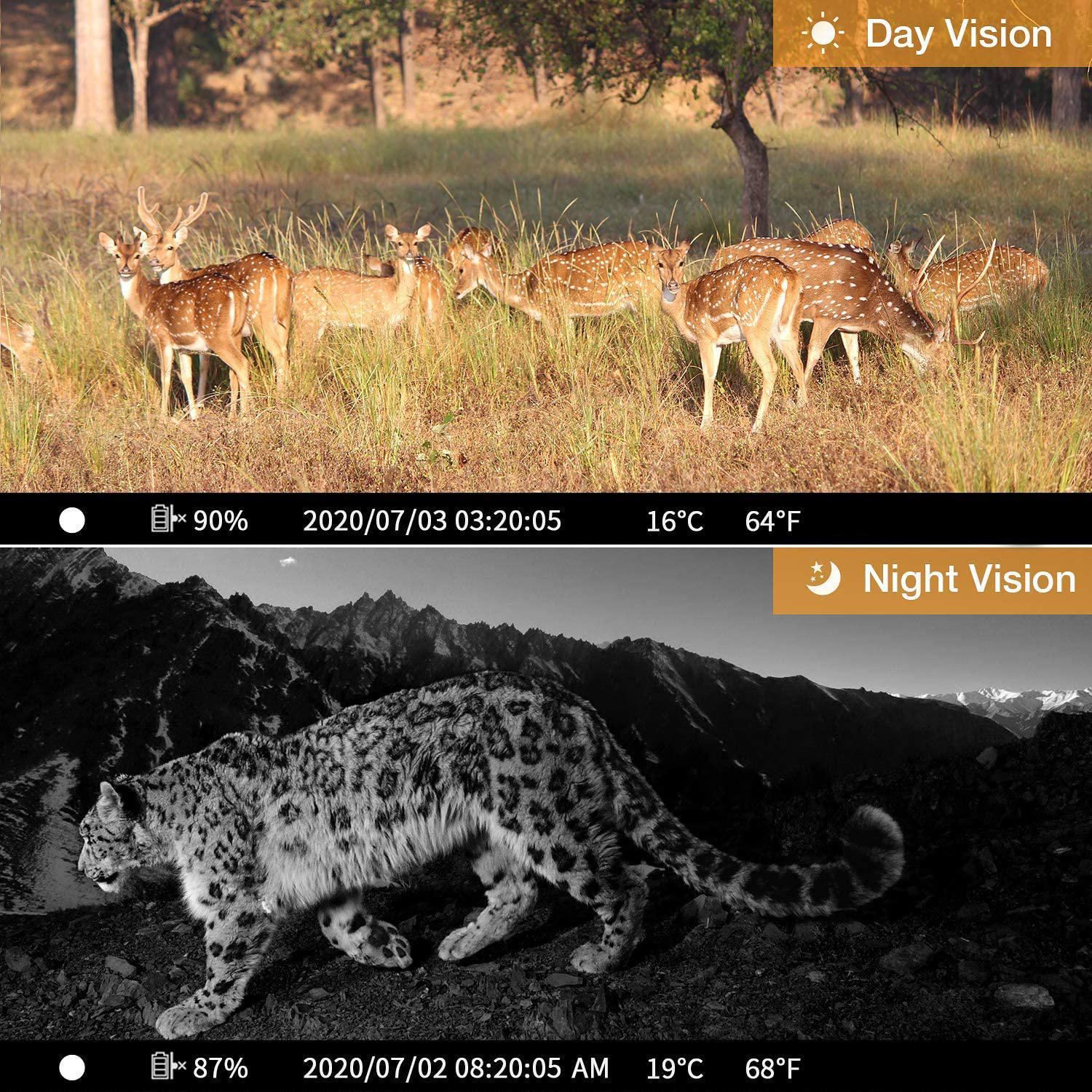 Cette caméra de chasse Wifi sera la partenaire idéale si vous voulez chasser ou avoir un système de surveillance. Sa résolution vidéo Full HD et ses 20 mégapixels associés à sa vision nocturne infrarouge allant jusqu'à 20 mètres vous permettra d'avoir des images et des vidéos de très belle qualité. Ayant une vision grand angle de 120 degrés et un détecteur de mouvement, vous pouvez observer et capturer plus d'animaux (ou d'intrus), mais surtout de manière plus précise et rapide. Elle est ergonomique et ne consomme pas beaucoup d'énergie (plusieurs semaines d'autonomie avec 8 piles AA).