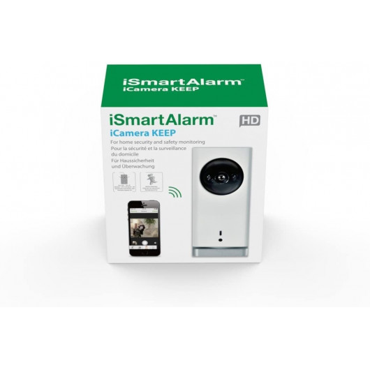 iSmartAlarm iCamera KEEP n'a pas de frais mensuels ou de frais d'installation, ni de contrats. Elle fonctionne comme caméra WiFi seule ou dans le pack iSmart Home Security System. La reconnaissance sonore identifie and vous prévient avec une alarme de monoxyde de carbone et de fumée. Elle a un enregistrement et stockage sur cloud gratuit en cas d'urgence pour accéder aux vidéos enregistrées.