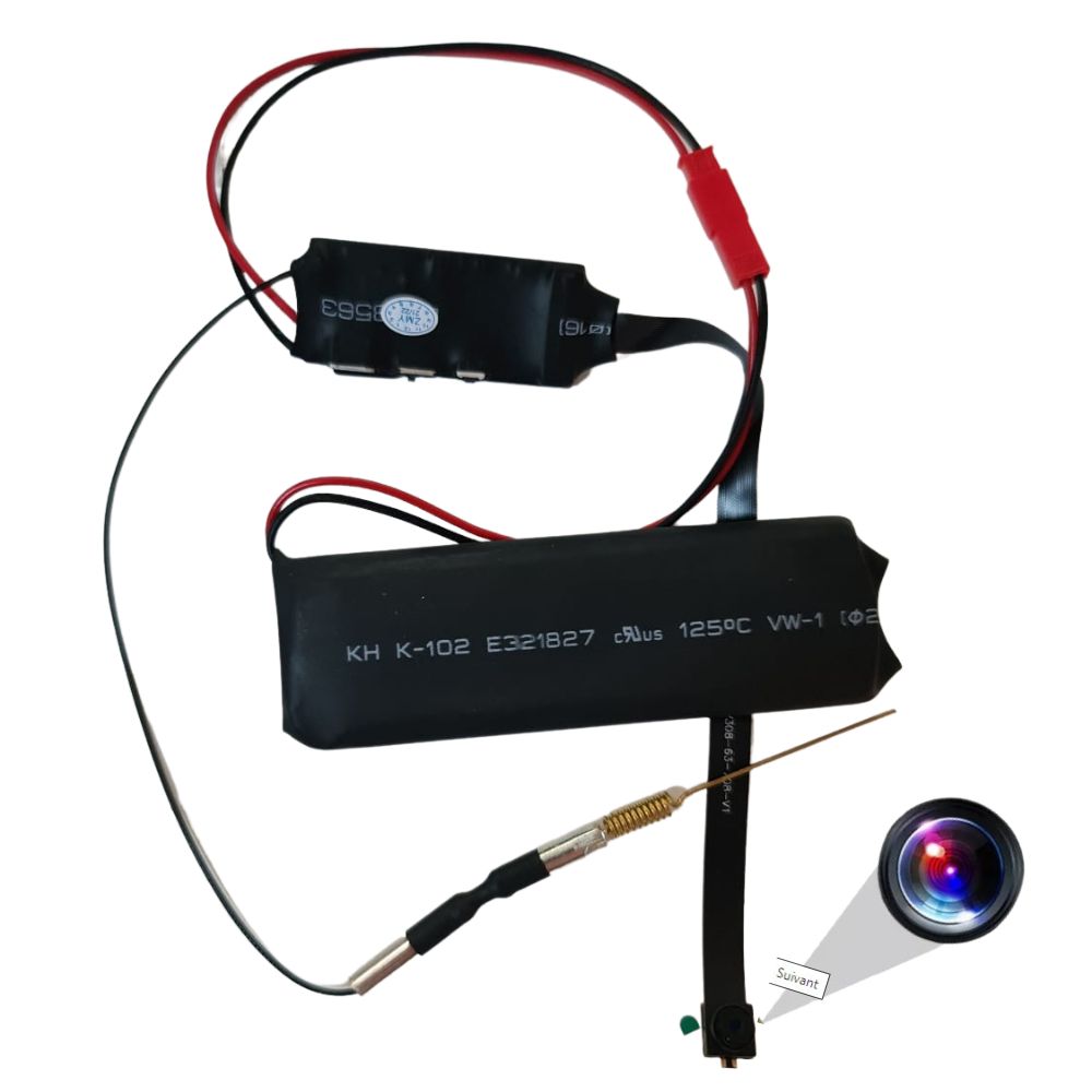 Cette mini caméra portable dispose d'une batterie de 1200mAh et peut donc aisément filmer en continu de nombreuses heures (jusqu'à 6 heures). L'objectif de la caméra est minuscule, ne mesurant que quelques millimètres. Il est donc indétectable et en plus dispose même d'un microphone pour que vous puissiez également enregistrer le son !