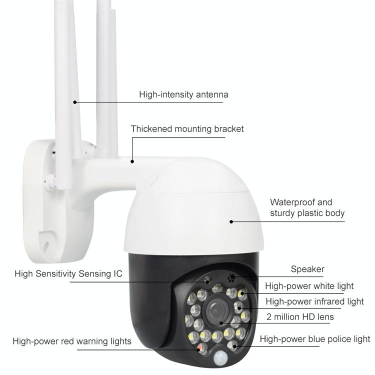 - Fonctionnalités : Détection de mouvement, vision nocturne, détection d'alarme, interphone bidirectionnel