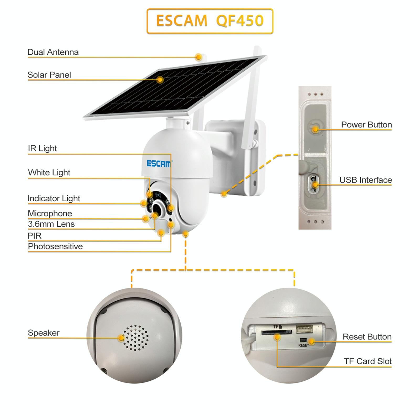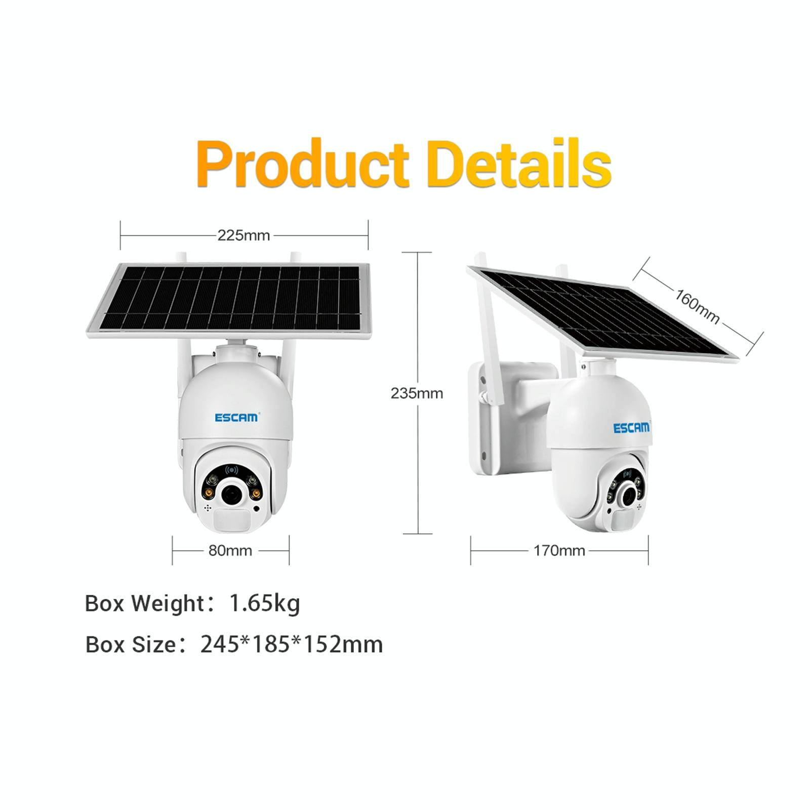 - Batterie rechargeable intégrée : Batterie lithium 14400 mAh avec panneau solaire amovible pour une charge continue et une consommation ultra-faible.