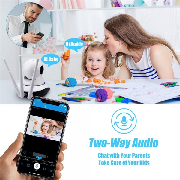 La meilleure façon d'assurer la sécurité de votre maison est d'installer une caméra, cette caméra enregistre des images effaçantes en 1080p jour et nuit pour assurer la sécurité et la fiabilité. Grâce à vos objectifs puissants, vous obtenez une image claire de jour et de nuit. Avec l'option d'achat, vous pouvez parler à n'importe qui près de la chambre. De plus, il a un capteur de détection de son et de mouvement, ce qui signifie que chaque fois que quelqu'un est à votre porte, vous recevrez une notification sur votre téléphone. Vous pouvez même activer une alarme pour effrayer les voleurs. Suivez automatiquement l'objet en mouvement, corps ou animal de compagnie et centralise l'objet en mouvement dans la chambre. Retourne automatiquement au «site de préajustement» après 10s, lorsque personne n'apparaît ou ne bouge. Détection de mouvement Vous recevrez des alertes directement sur votre smartphone dès que certains mouvements seront détectés. En raison de sa connectivité WiFi, permet une application que l'accès est là où il est.