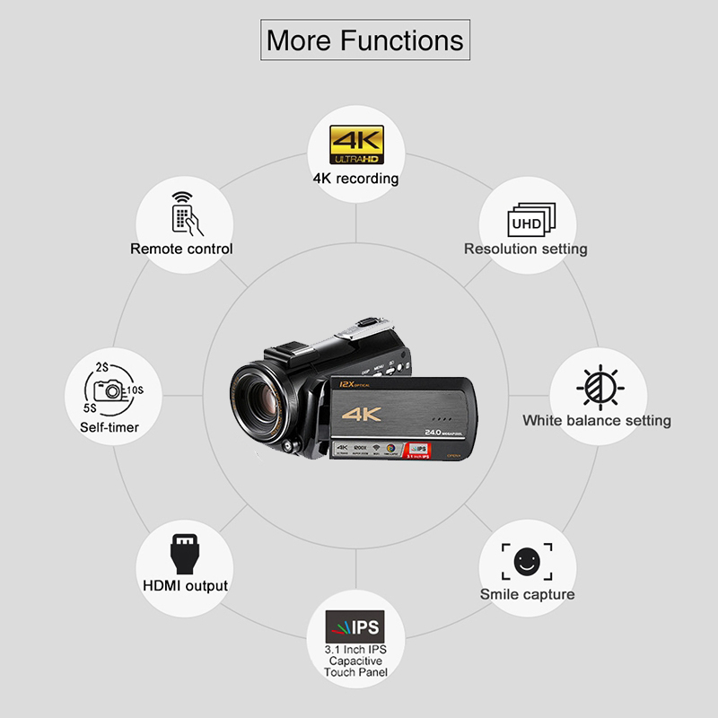 Zoom optique 12X et fonctionnalités avancéesLe Caméscope numérique ne se limite pas à la résolution 4K. Il est également équipé d'un zoom optique 12X et d'un zoom numérique 100X, vous permettant de capturer des détails lointains avec une clarté impressionnante. Sa balance des blancs automatique assure des couleurs naturelles, quelles que soient les conditions d'éclairage. De plus, il dispose d'une fonction de vision nocturne, vous permettant de filmer même dans l'obscurité.