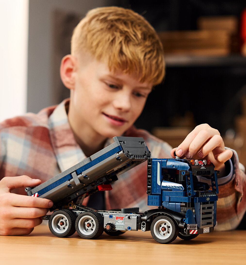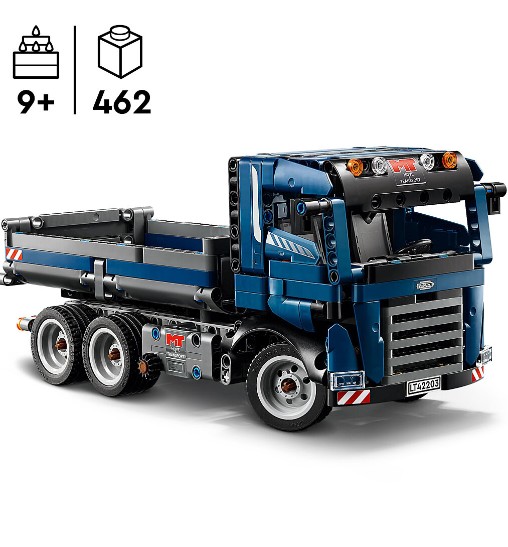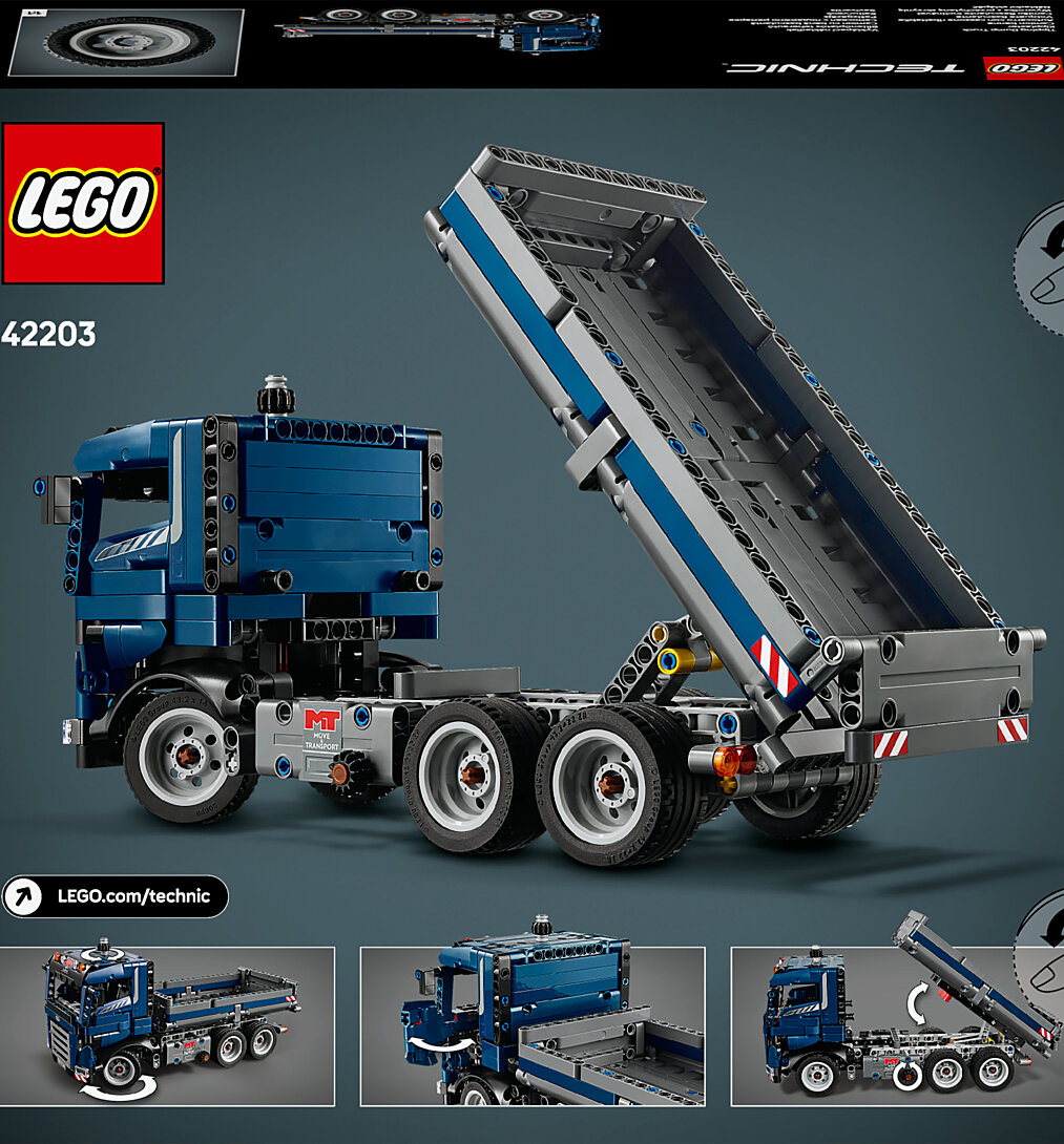 Les garçons et les filles de 9 ans et plus peuvent vivre de nombreuses aventures sur un chantier de construction avec le jeu de construction Camion benne LEGO Technic (42203). Ce véhicule bleu invite les enfants dès 9 ans à imaginer qu’ils sont sur un chantier en train de conduire un camion benne. Dirigez le camion et tournez le bouton sur le côté pour faire basculer la benne. Ouvrez les portières pour voir l’intérieur de la cabine, puis conduisez le camion jusqu’à son prochain chantier. Les sets LEGO Technic incluent des mouvements réalistes qui initient les jeunes constructeurs LEGO à l’univers de l’ingénierie et de la mécanique. Ce jouet de construction est un beau cadeau d'anniversaire à offrir à des enfants passionnés de véhicules et de jouets de chantier LEGO. L’application LEGO Builder propose une aventure de construction intuitive : les enfants peuvent zoomer, faire pivoter les maquettes en 3D, sauvegarder leurs sets et suivre leur progression. Dimensions – Le camion benne de ce set LEGO composé de 462 pièces mesure plus de 14 cm de haut, 28 cm de long et 11 cm de large.