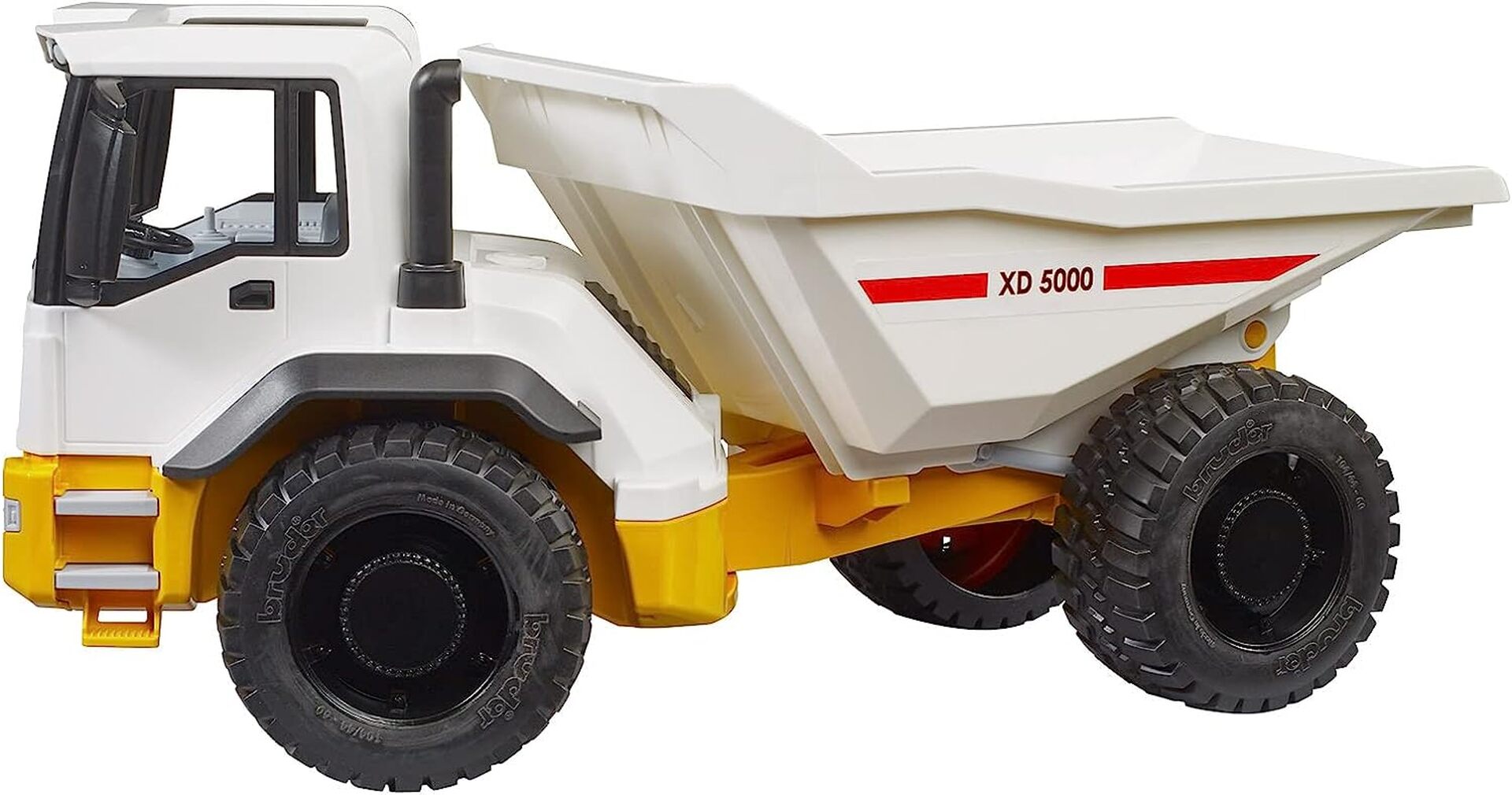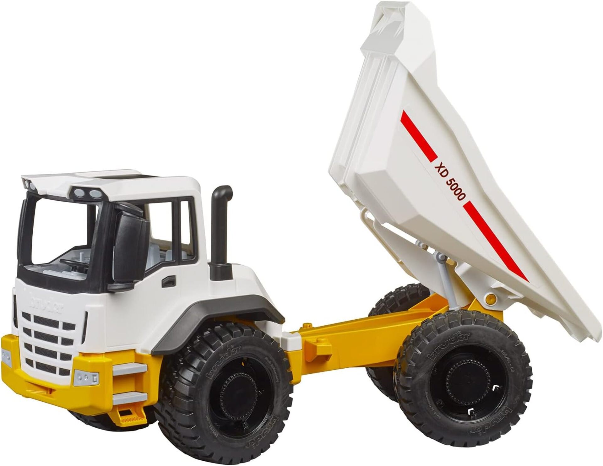 | Plus produit | Carrosserie de véhicule\n- Benne basculante fonctionnelle\n\nTrain de roulement\n- Direction pivotante\n- Pneus profilés\n\nGénéralités\n- Age recommandé : à partir de 2 ans pour l\'intérieur et l\'extérieur\n- Fabriqué en plastiques de qualité, par ex. ABS\n- Made by Bruder |