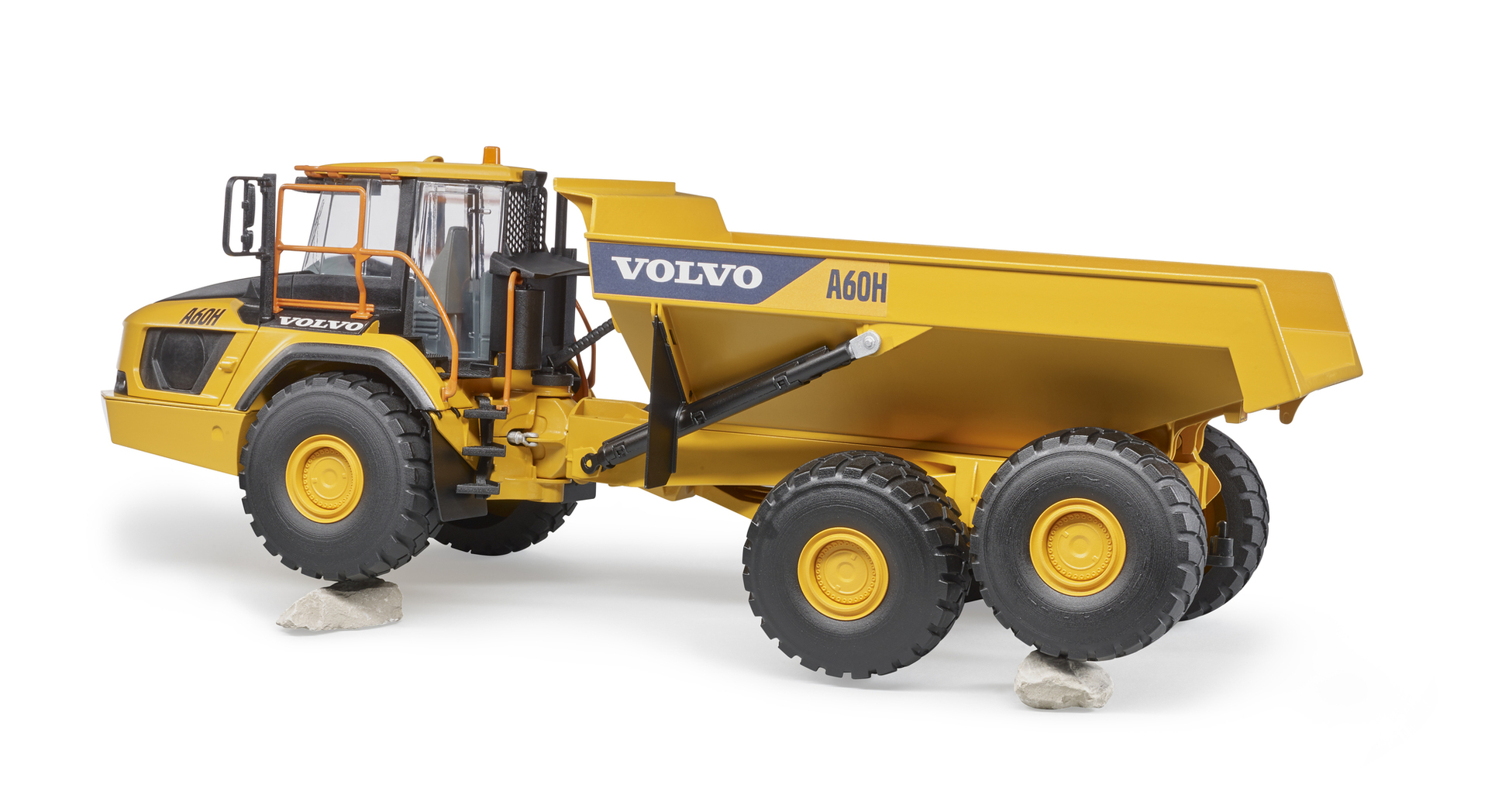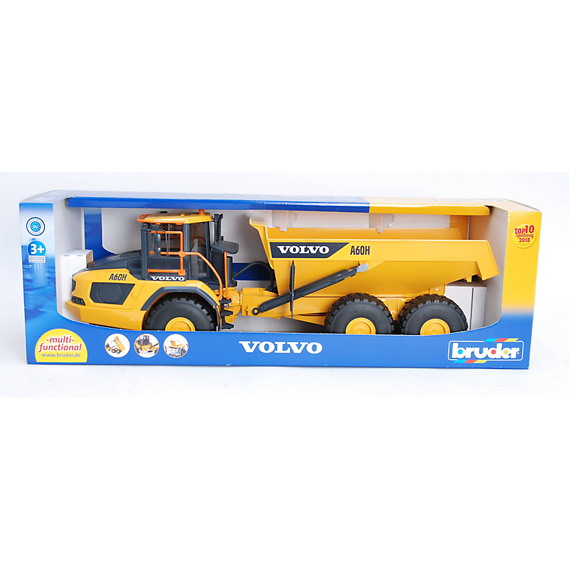 Le camion benne VOLVO A60H garantit des capacités exemplaires grâce à sa direction articulée solide associée à des pneus à ballons massifs. La trappe de toit s'ouvre afin de pouvoir positionner une figurine (non incluse). Le bac à basculement est entièrement fonctionnel ce qui permet de charger et décharger de manière optimale. Camion benne moderne, puissant et de haute qualité. Dim : 46,5 x 18,5 x 26 cm