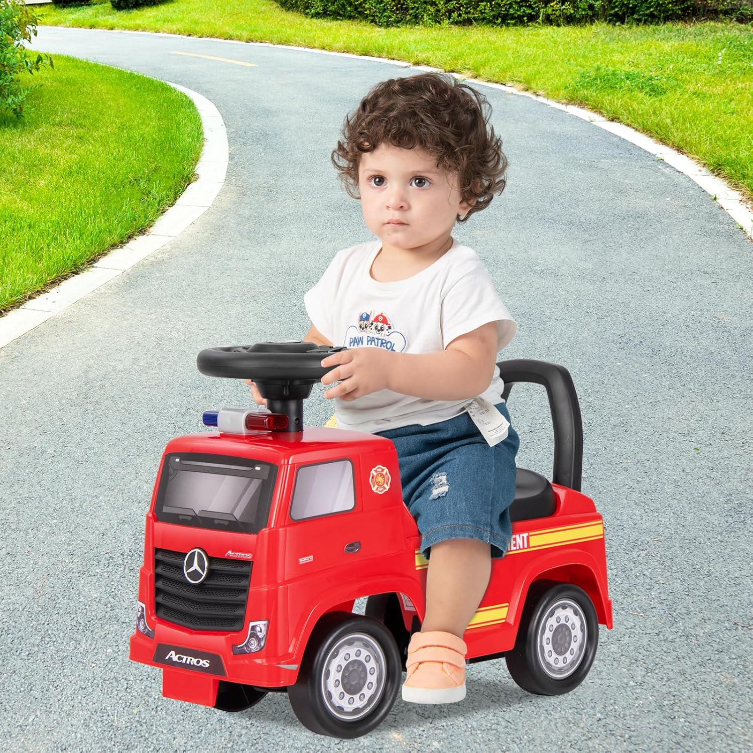 Camion de pompier pousse-pousse enfants, porteur bebe mercedes-benz,trotteur marcheur avec dossier