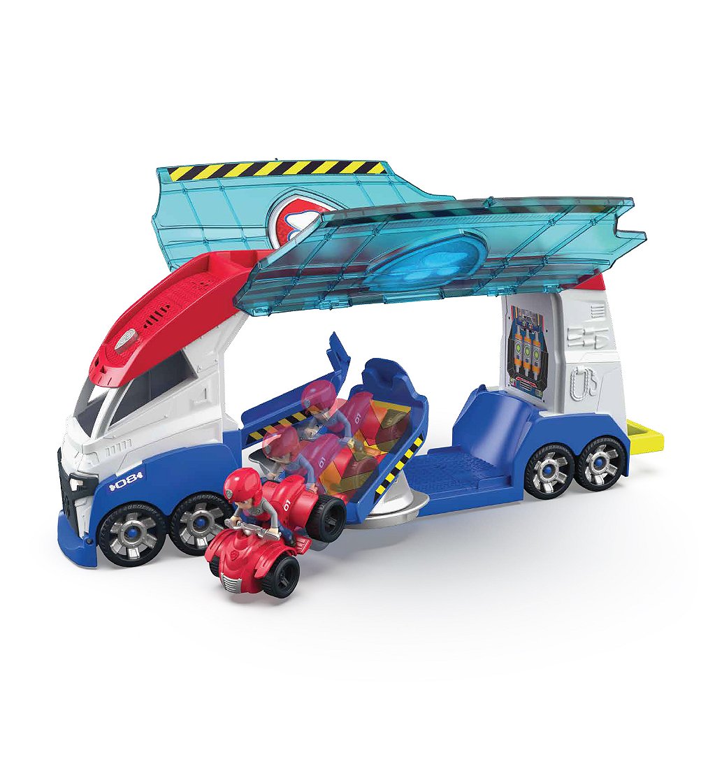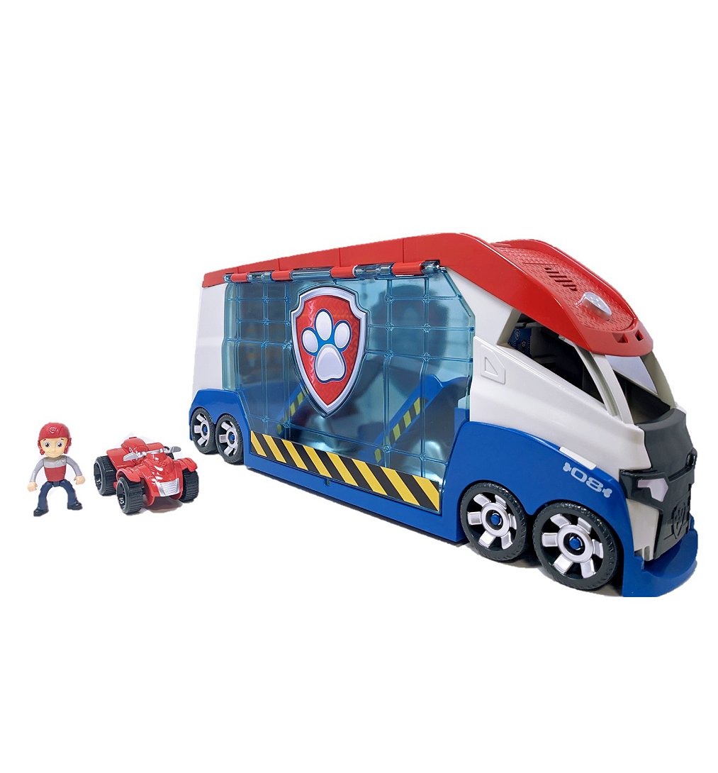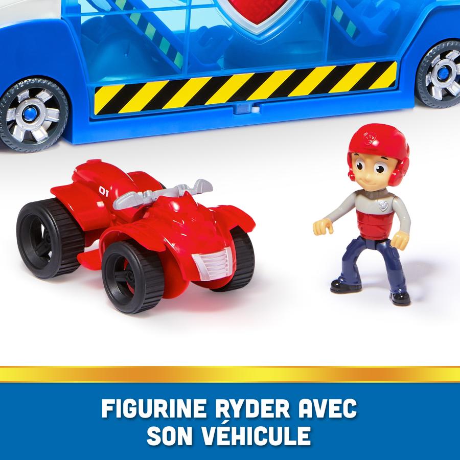 Un véhicule interactif avec sons réalistes qui se transforme en centre de commandement avec double-lanceur de véhicules. Peut accueillir jusqu’à 6 véhicules et figurines. 1 figurine de Ryder et son véhicule inclus. 2 piles LR03 fournies. Dès 3 ans.