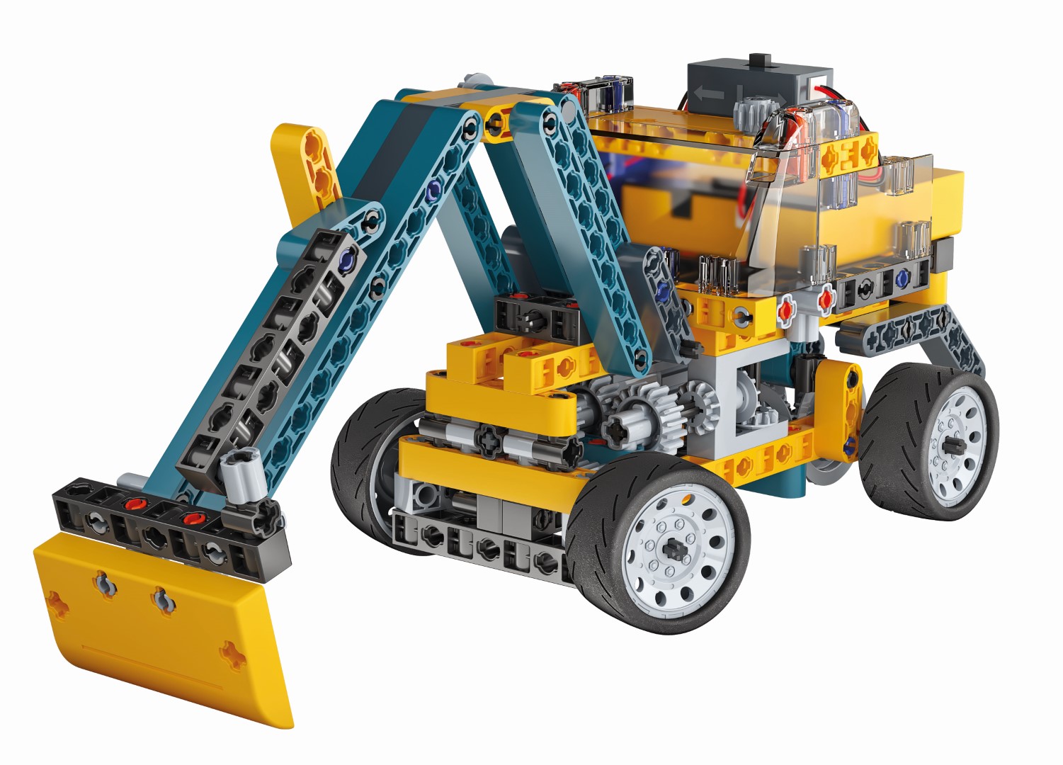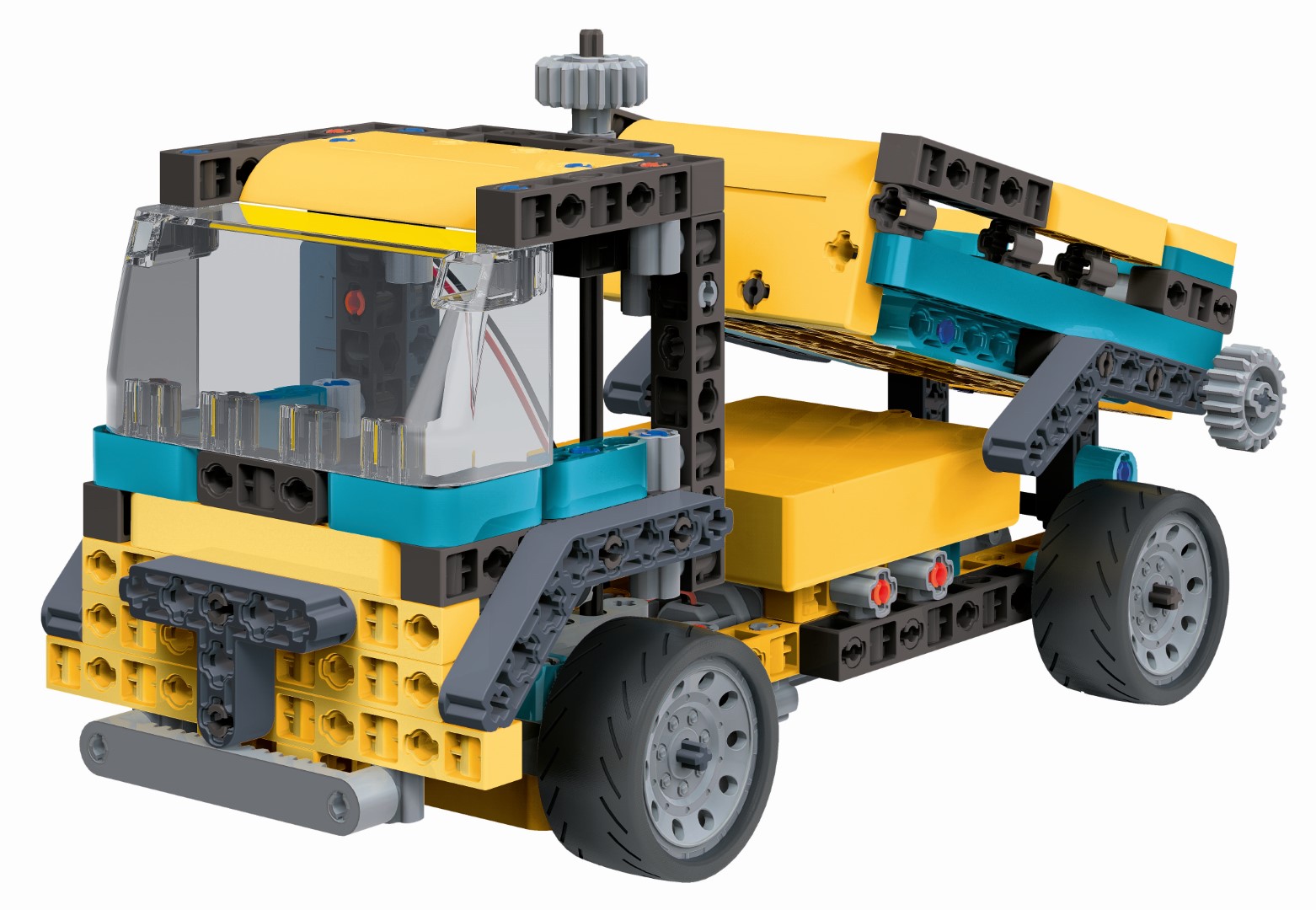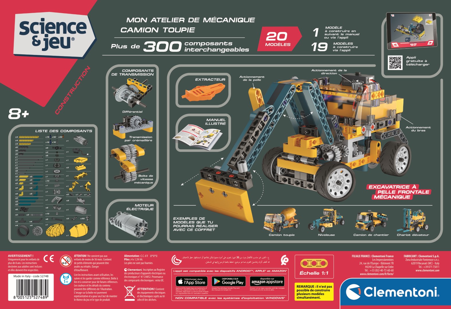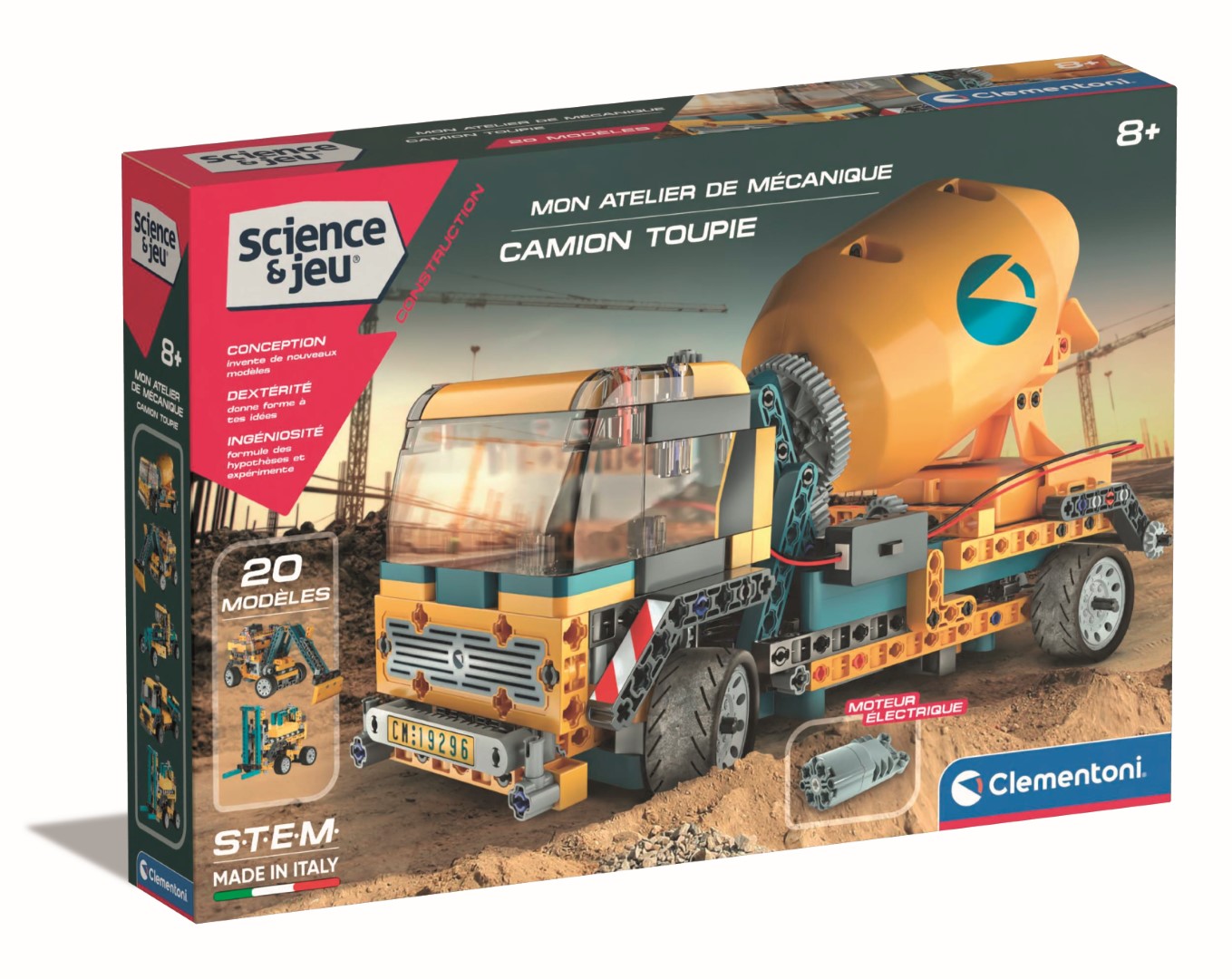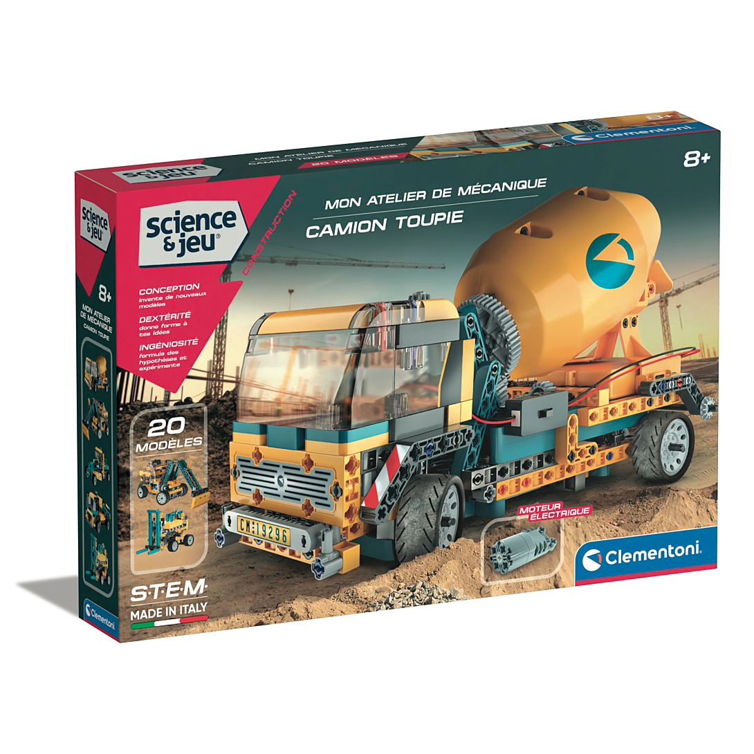 • Un fantastique camion toupie motorisé à assembler pour expérimenter et apprendre les concepts les plus importants de la mécanique et de l'ingénierie. • Le moteur électrique active la rotation de la bétonnière et fait tourner les roues de traction arrières. • 20 modèles d'engins de chantier à assembler avec plus de 250 composants, dont moteur électrique, compartiment à piles, engrenages, différentiel, module de transmission et de nombreux autres composants. • Contient un manuel illustré et une application avec les modèles supplémentaires et les étapes de montage en 3D pour un assemblage facile.