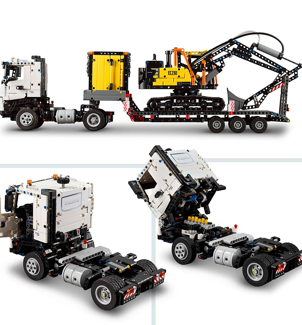 Invitez les enfants à construire leurs propres véhicules de chantier avec le camion Volvo et la pelleteuse. Avec sa remorque, sa pelleteuse électrique et sa borne de recharge, le set LEGO Technic Camion Volvo FMX et pelleteuse électrique EC230 (42175) propose aux enfants de plonger dans la construction de 2 véhicules détaillés. Les jeunes constructeurs LEGO peuvent ouvrir les portes du camion LEGO Technic et incliner la cabine de l’opérateur pour admirer le moteur V6 à pistons mobiles. Ils peuvent ensuite mettre le camion en position, détacher la remorque et déployer la rampe pour faire descendre la pelleteuse. La pelleteuse comprend des portes qui s’ouvrent et de nombreuses fonctionnalités. Regardez-la pivoter à 360° sur ses chenilles et utilisez la fonction pneumatique pour soulever et abaisser le godet. Les jeunes passionnés de chantiers peuvent s’imaginer au travail sur un site, en train de soulever et descendre la borne de recharge avec le godet et les chaînes. Ce set LEGO permet aux enfants de 10 ans et plus de contruire deux véhicules de qualité, tout en encourageant le jeu de rôle.