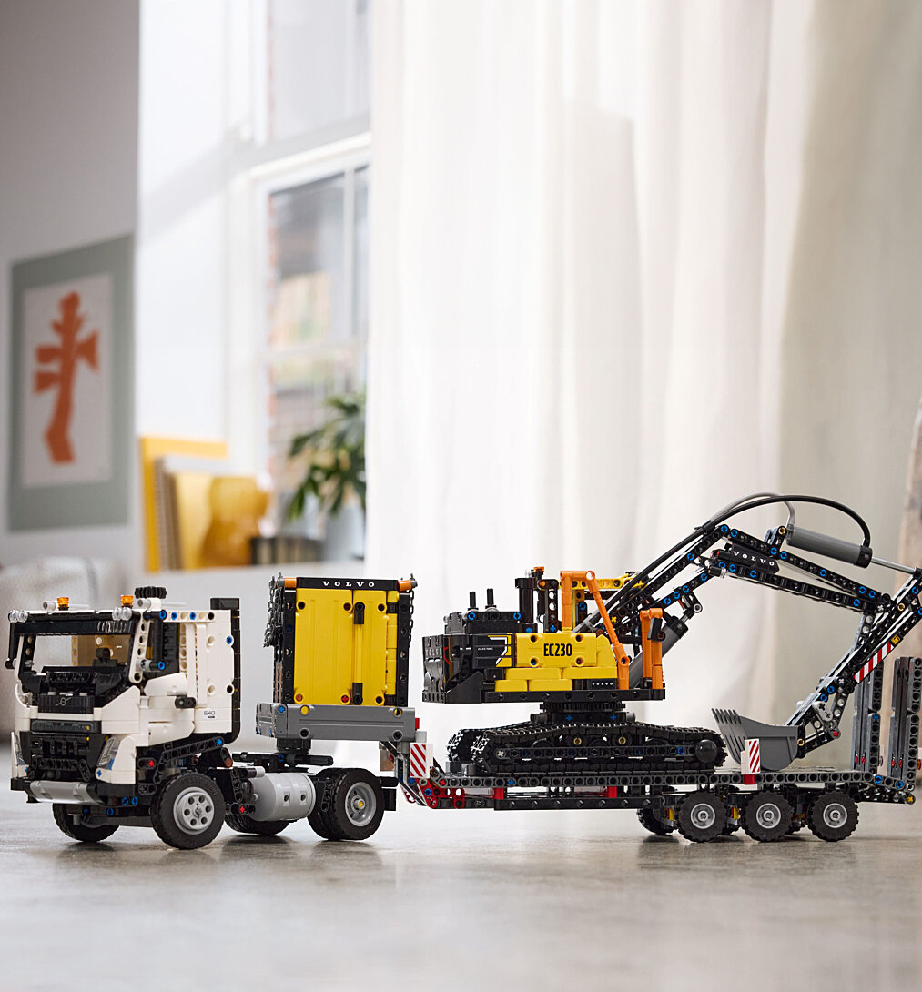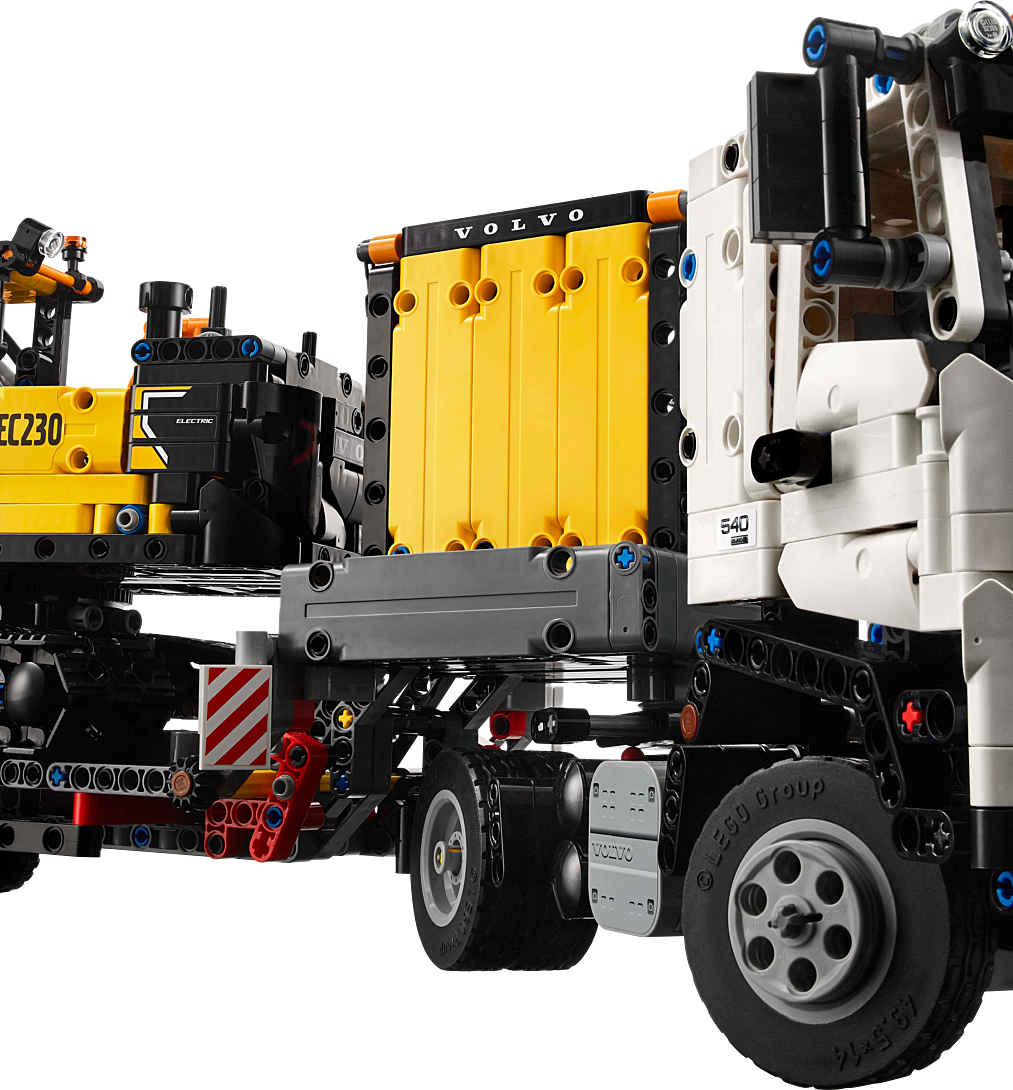 Invitez les enfants à construire leurs propres véhicules de chantier avec le camion Volvo et la pelleteuse. Avec sa remorque, sa pelleteuse électrique et sa borne de recharge, le set LEGO Technic Camion Volvo FMX et pelleteuse électrique EC230 (42175) propose aux enfants de plonger dans la construction de 2 véhicules détaillés. Les jeunes constructeurs LEGO peuvent ouvrir les portes du camion LEGO Technic et incliner la cabine de l’opérateur pour admirer le moteur V6 à pistons mobiles. Ils peuvent ensuite mettre le camion en position, détacher la remorque et déployer la rampe pour faire descendre la pelleteuse. La pelleteuse comprend des portes qui s’ouvrent et de nombreuses fonctionnalités. Regardez-la pivoter à 360° sur ses chenilles et utilisez la fonction pneumatique pour soulever et abaisser le godet. Les jeunes passionnés de chantiers peuvent s’imaginer au travail sur un site, en train de soulever et descendre la borne de recharge avec le godet et les chaînes. Ce set LEGO permet aux enfants de 10 ans et plus de contruire deux véhicules de qualité, tout en encourageant le jeu de rôle.