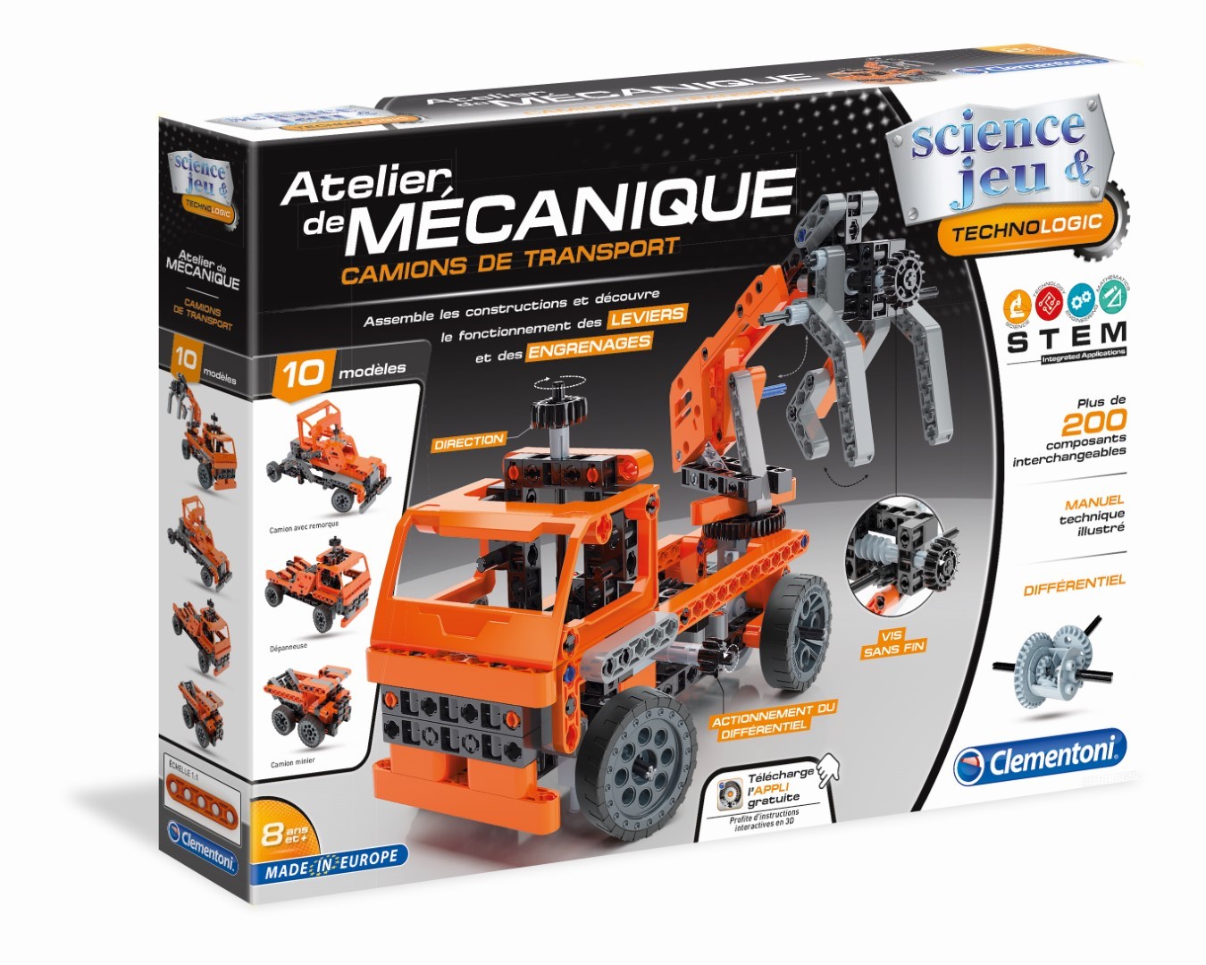 Un nouveau laboratoire incroyable pour apprendre comment fonctionnent les gros camions de transport et découvrir les principes de la mécanique et de l'ingénierie de manière simple et absorbante ! Le coffret comprend plus de 200 composants, avec un différentiel, des pignons, des tiges, des panneaux et bien plus encore, pour construire 10 fantastiques modèles mobiles. Construis des camions avec une vraie direction et une poignée pour le transport des troncs d'arbres, une remorque à bascule, un camion minier ou encore un autre véhicule fantastique avec une grue qui fonctionne vraiment ! Un manuel illustré complet guide l'enfant étape par étape dans la construction des modèles et enseigne les bases de la mécanique, de l'ingénierie et du fonctionnement des leviers et des engrenages.