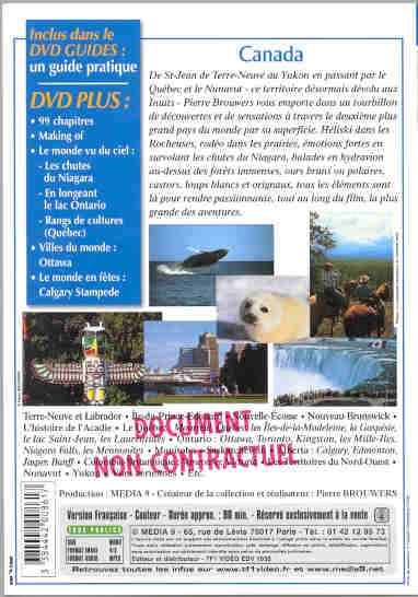 De St-Jean de Terre-Neuve au Yukon en passant par le Québec et le Nunavut - ce terriroire désormais dévolu aux Inuits - cette nouvelle édition du Video Guide vous emporte dans un tourbillon de découvertes et sensations à travers le deuxième plus grand pays du monde par sa superficie. Héliski dans les Rocheuses, rodéo dans les prairies, émotions fortes en survolant les chutes du Niagara, ballades en hydravion au dessus des forêts immense, ours brune ou polaires, castors, loups blancs et orignaux, tous les éléments sont là pour rendre encore plus passionnante la plus grande des aventures.