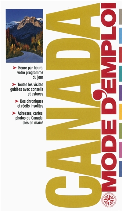 Canada Mode d'emploi Suivez le guide ! ¤ Un programme du jour pour tirer profit des plus beaux sites et des plus insolites en suivant les itinéraires conseillés et planifiés. ¤ Étape par étape des promenades et circuits pour découvrir le Canada, son patrimoine et sa nature exceptionnelle. ¤ Des conseils et astuces au fil des pages pour vous aider à profiter au mieux de votre séjour. ¤ Le magazine des articles et chroniques pour saisir l'essentiel de l'histoire du pays. ¤ Des cartes et des plans balisés pour vous repérer naturellement. ¤ Des adresses sélectionnées pour répondre à toutes vos envies : randonnée en Gaspésie, rodéo dans les Prairies, artisanat amérindien sur Vancouver Island, course de traîneau dans le Yukon...