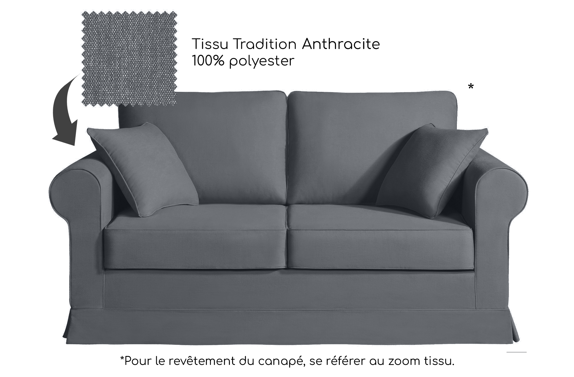 Canapé 2 pl COLME 170 cm fixe tissu Tradition Anthracite - 100% déhoussable - Fab. France