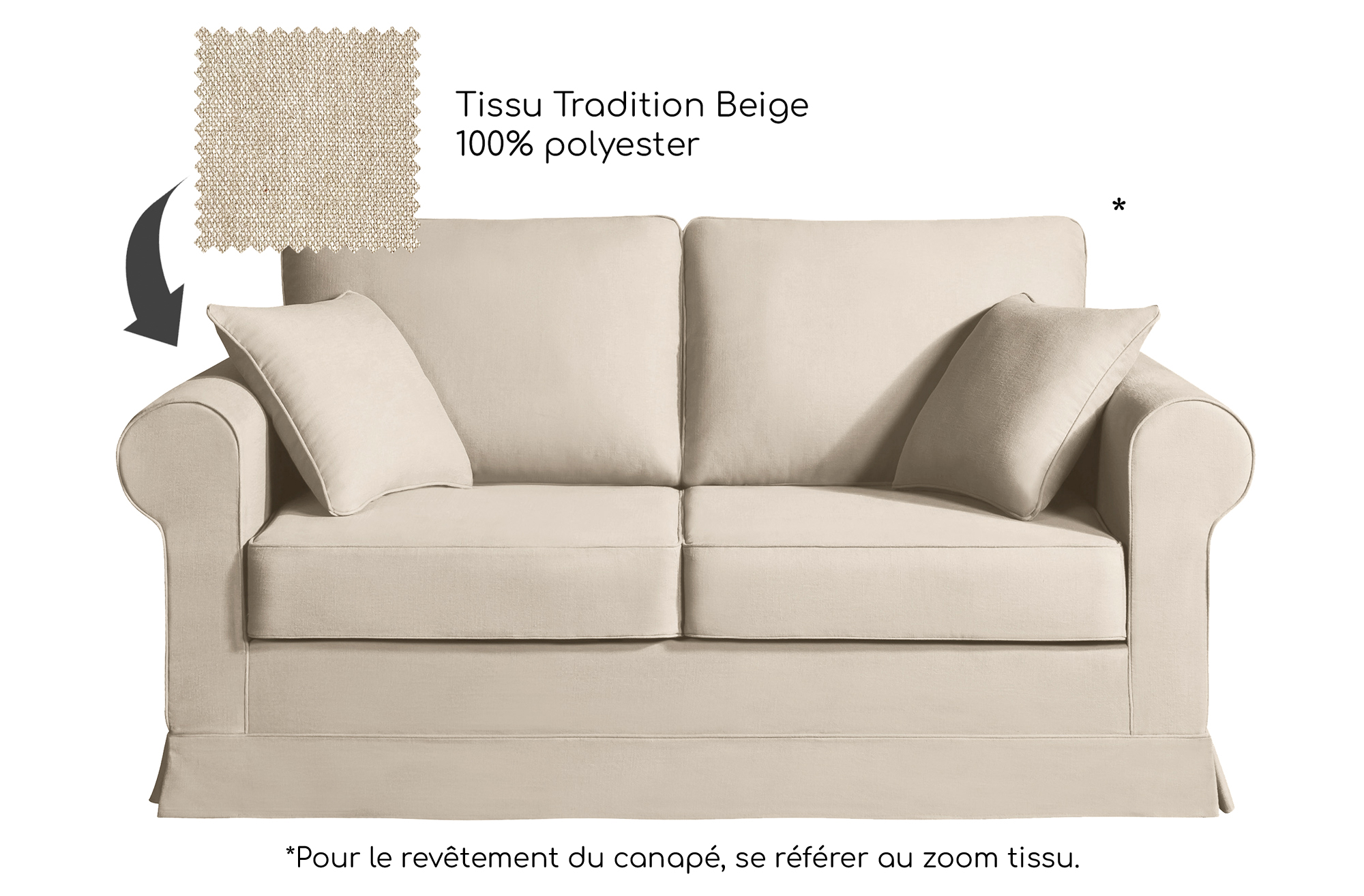 | Libellé | Canapé 2 pl COLME 170 cm fixe tissu Tradition Beige - 100% déhoussable - Fab. France |