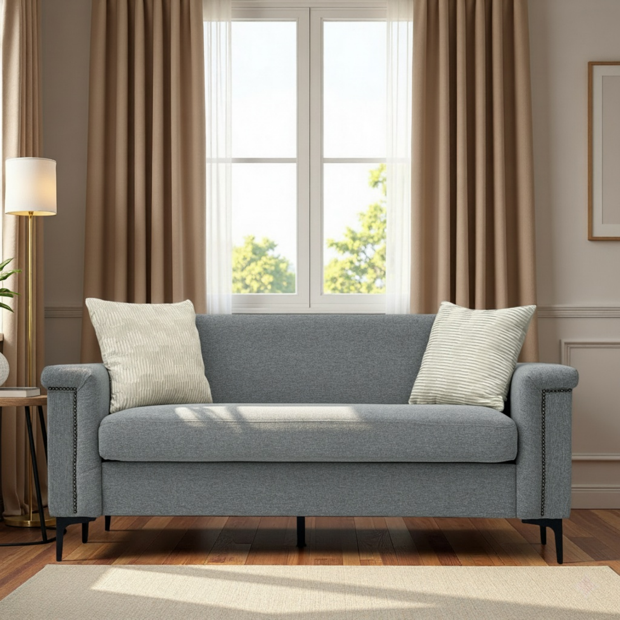 Détails cloutés classiques – Le devant des accoudoirs est orné de clous métalliques, une touche raffinée qui rehausse l'élégance du canapé.