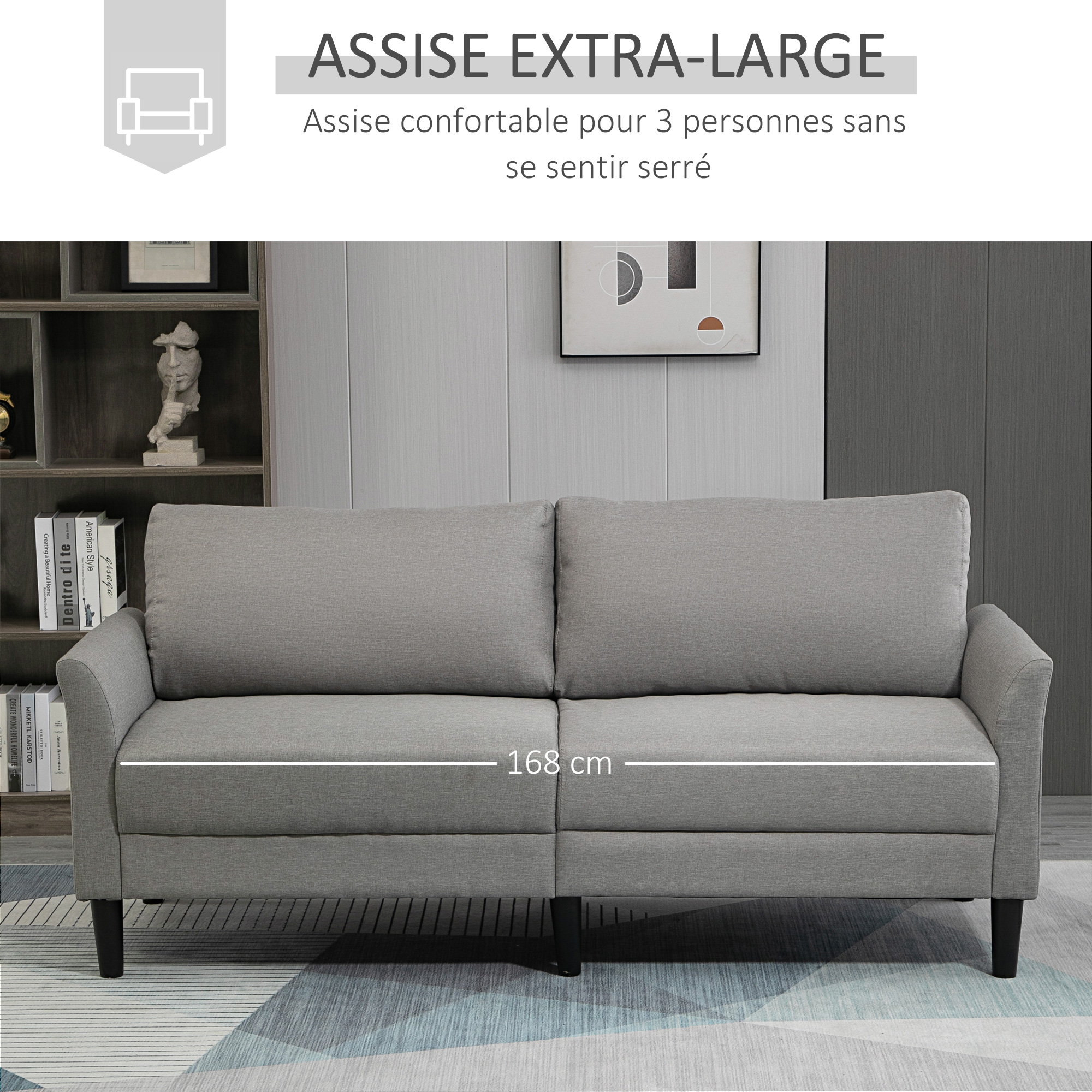 - Double assise large et profonde, dossier ergonomique légèrement incliné : confort optimum