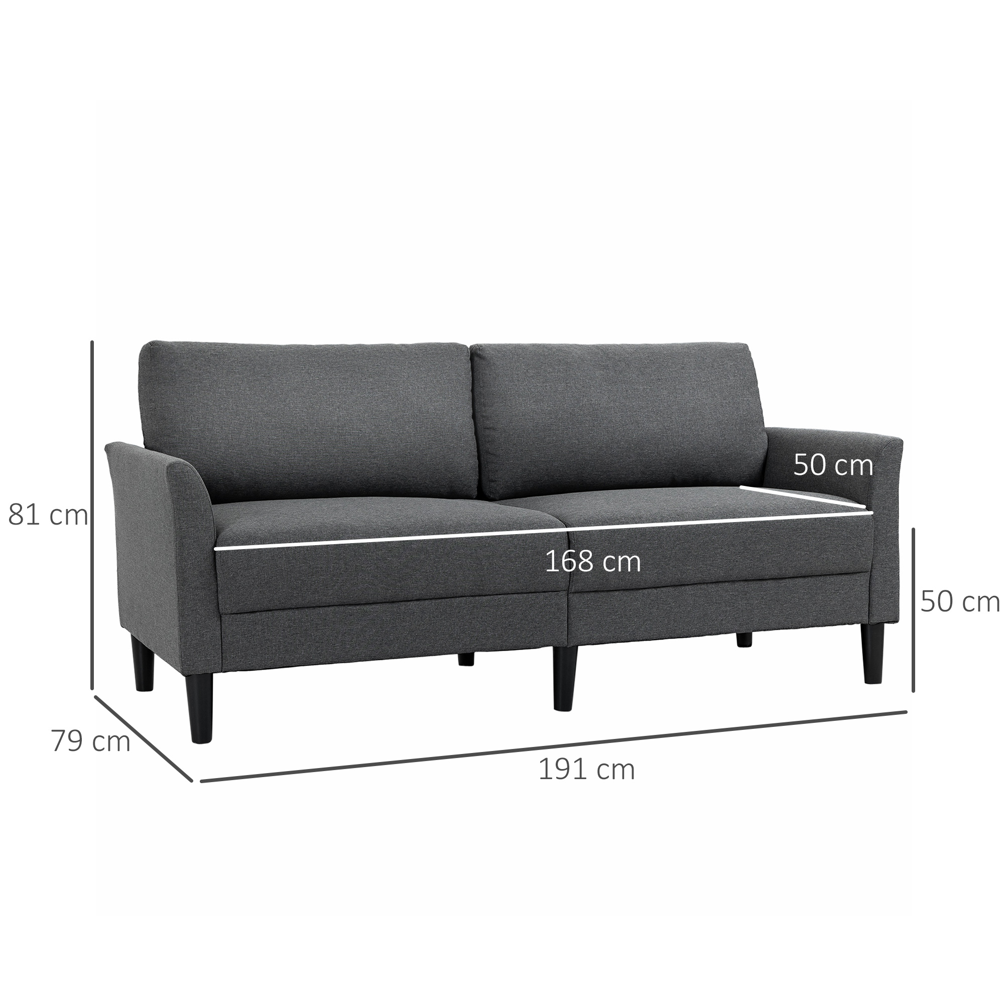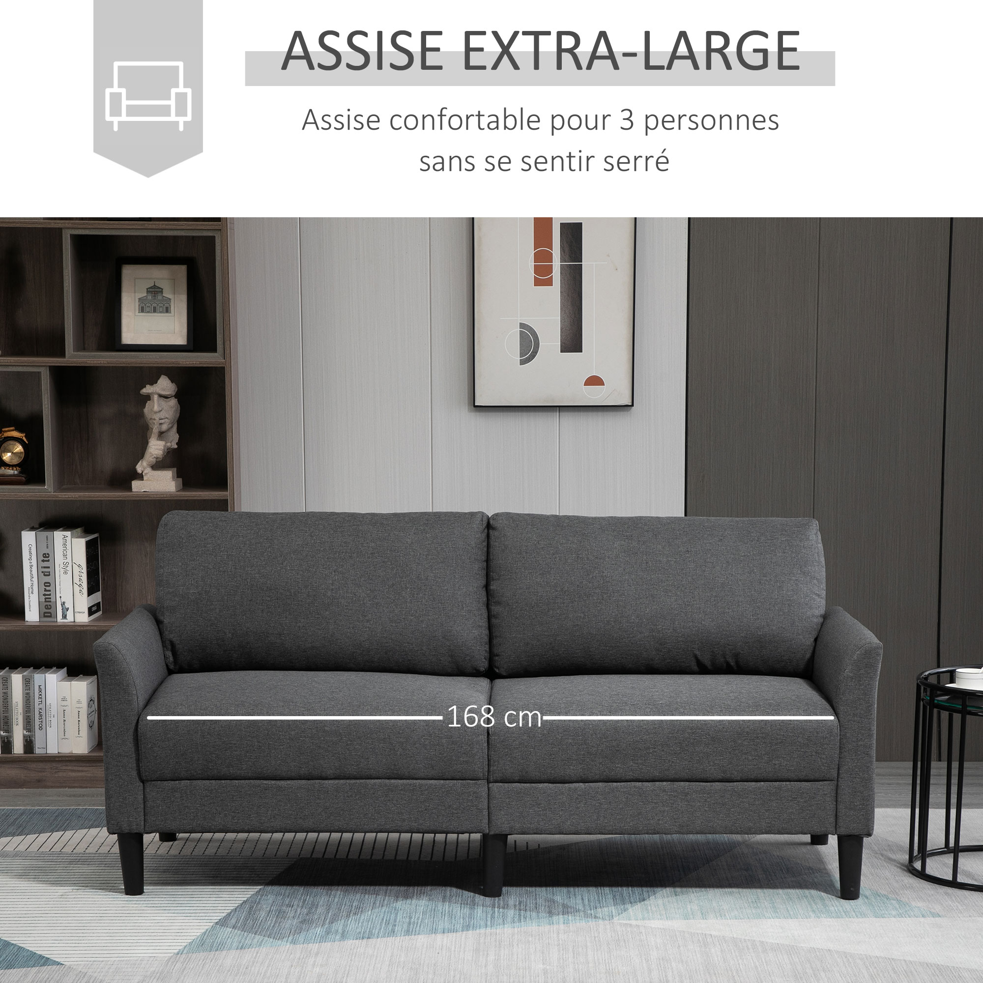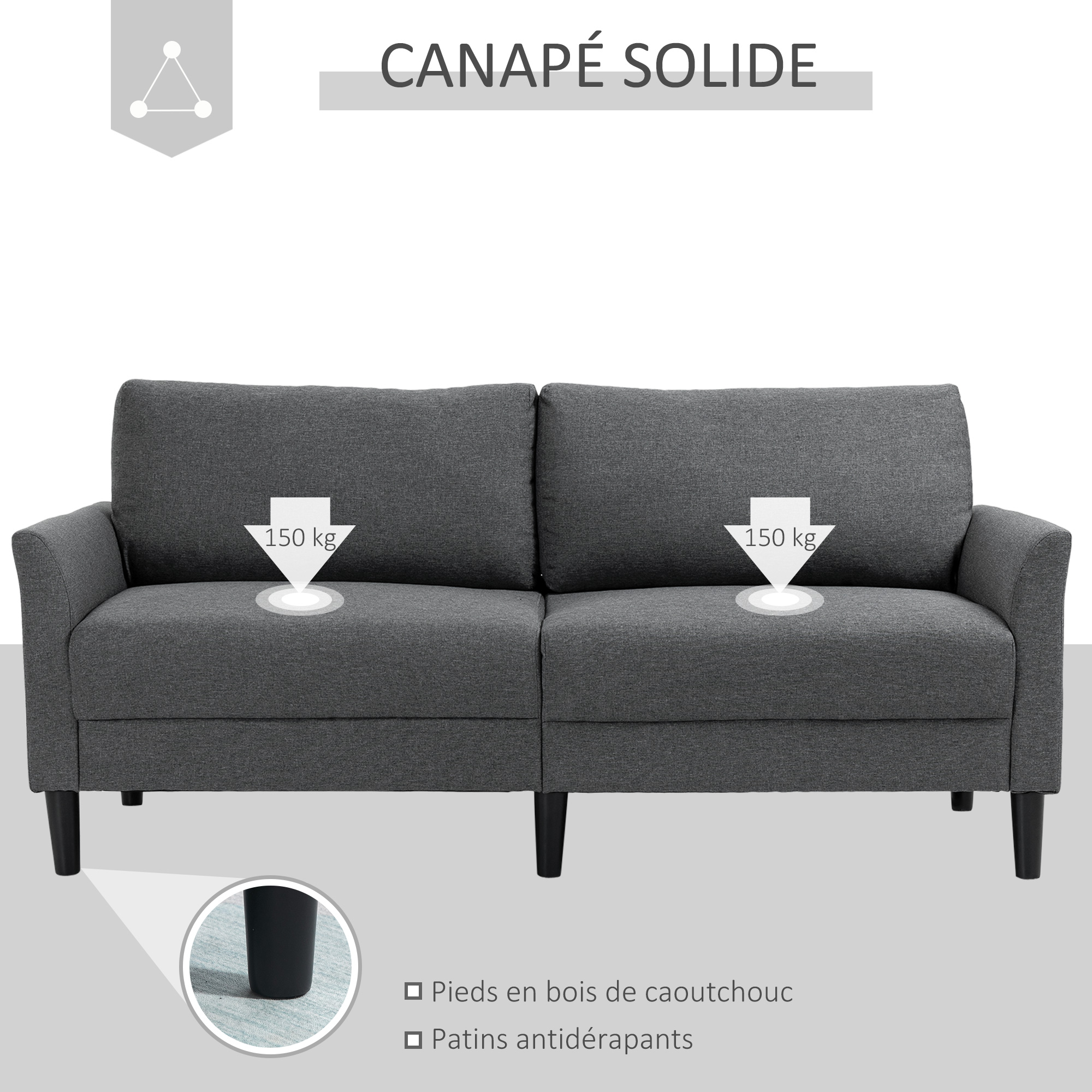 Libellé Canapé 2 places style contemporain assises larges profondes accoudoirs courbés piètement effilé bois hévéa noir polyester gris foncé