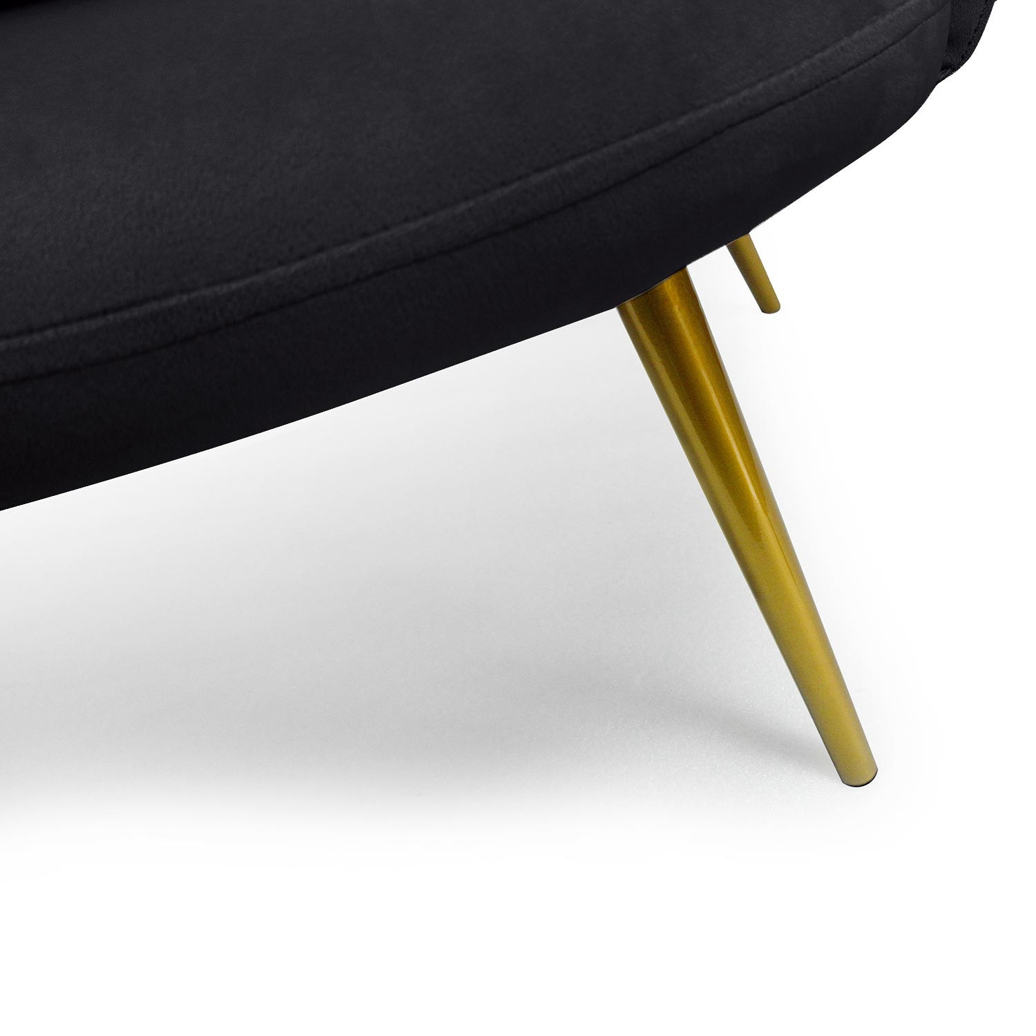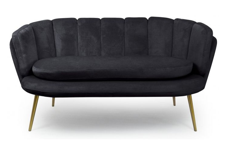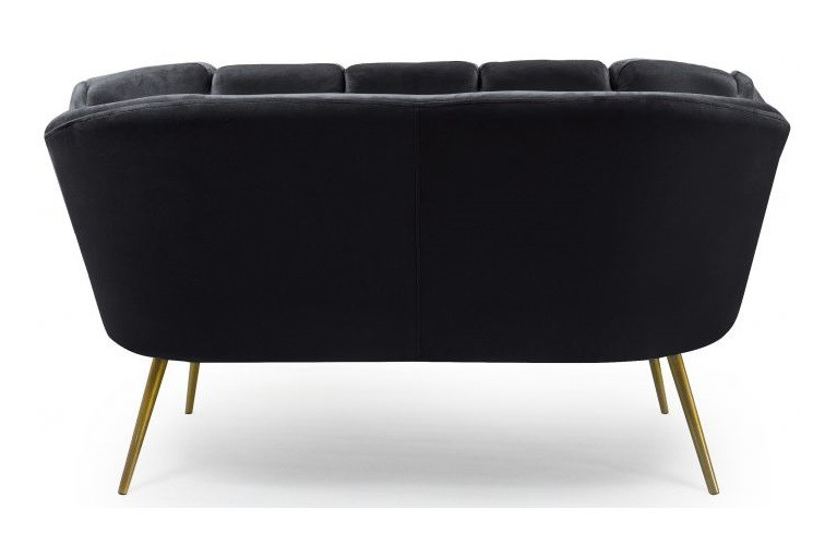 Canapé 2 places velours noir et pieds métal doré Ranni