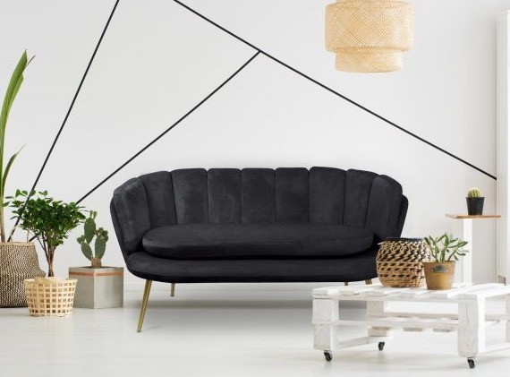 | Libellé | Canapé 2 places velours noir et pieds métal doré Ranni |