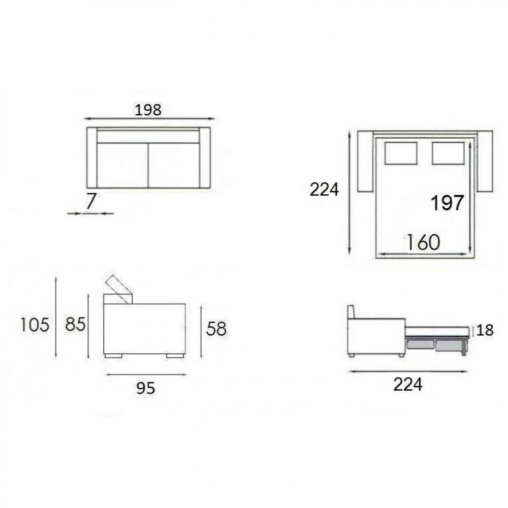- Encombrement du lit ouvert 224 cm.
