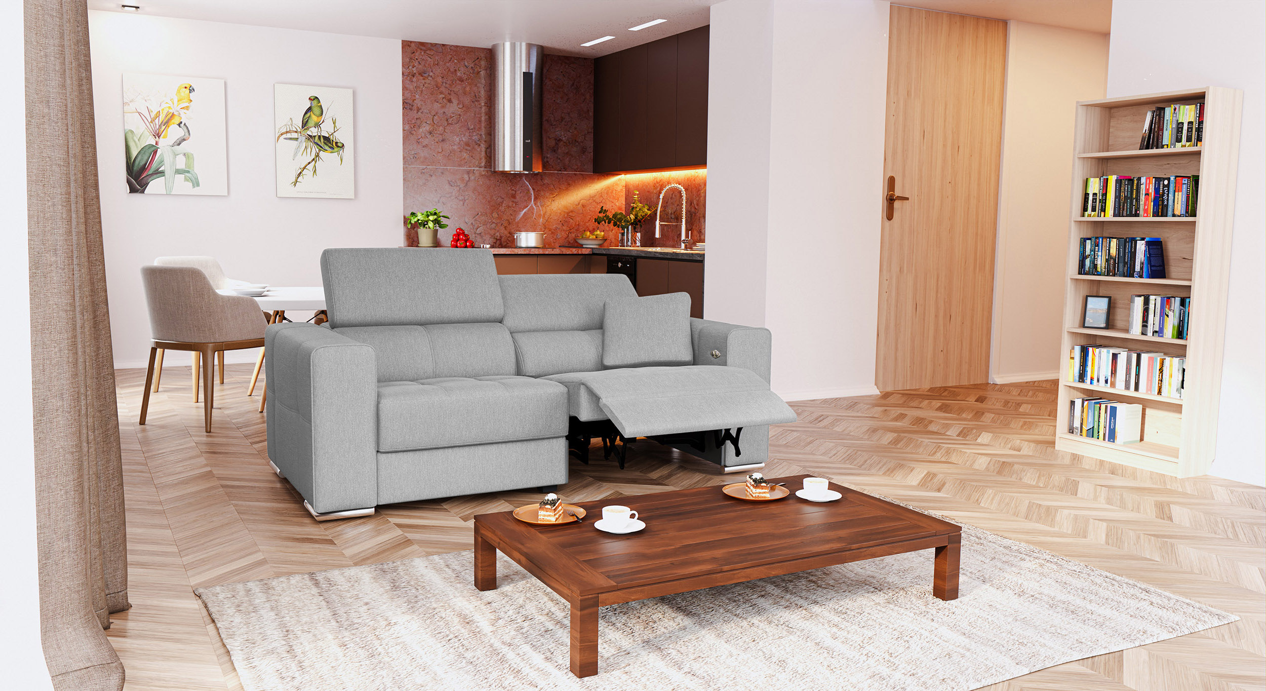 Canapé 3 places avec 1 relax électrique tissu gris clair - QUARTZ