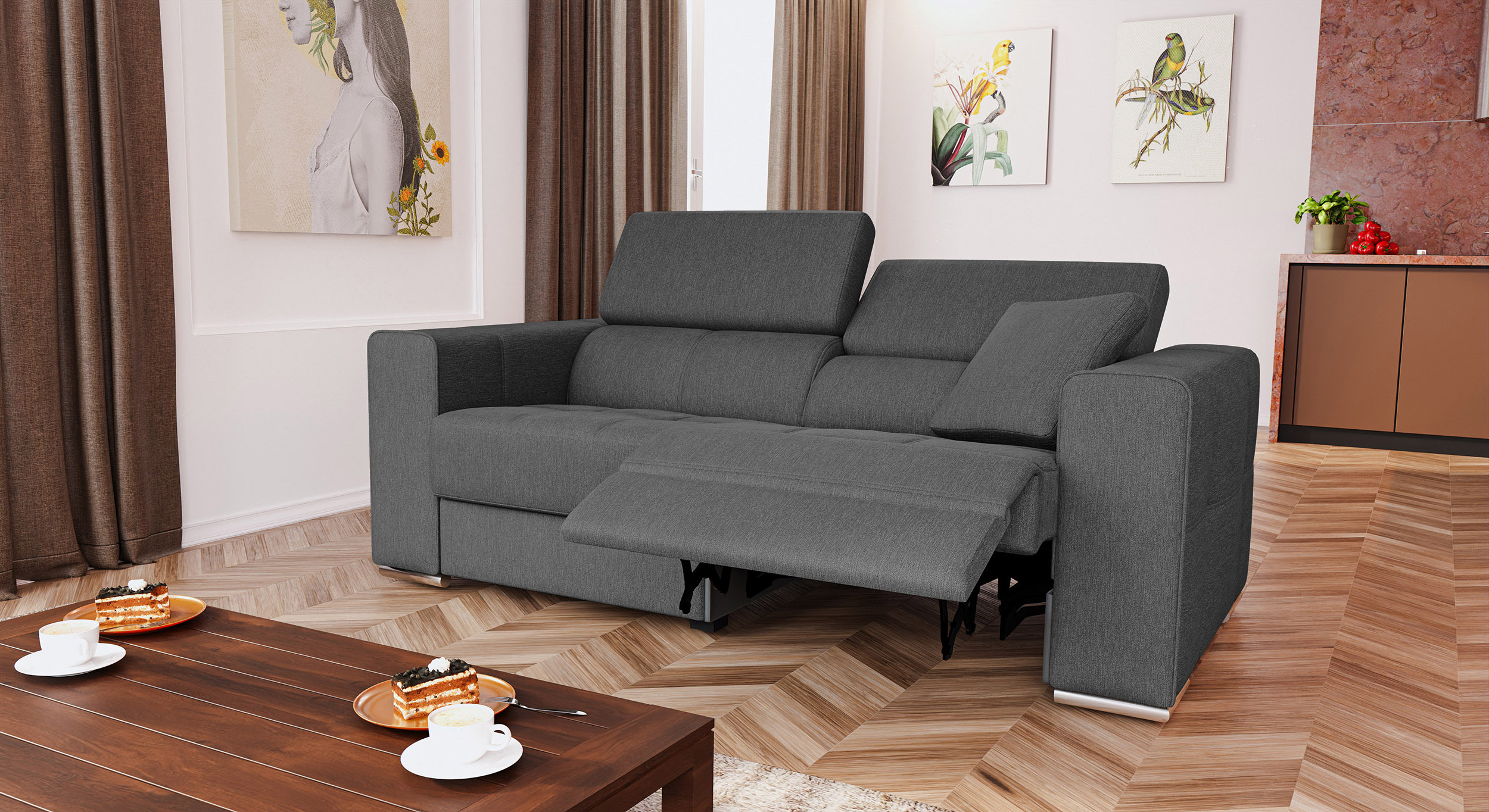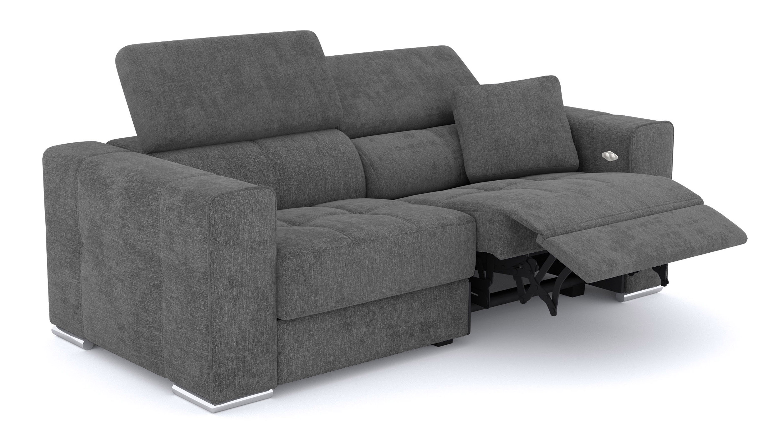 Canapé 3 places avec 1 relax électrique tissu gris foncé - QUARTZ