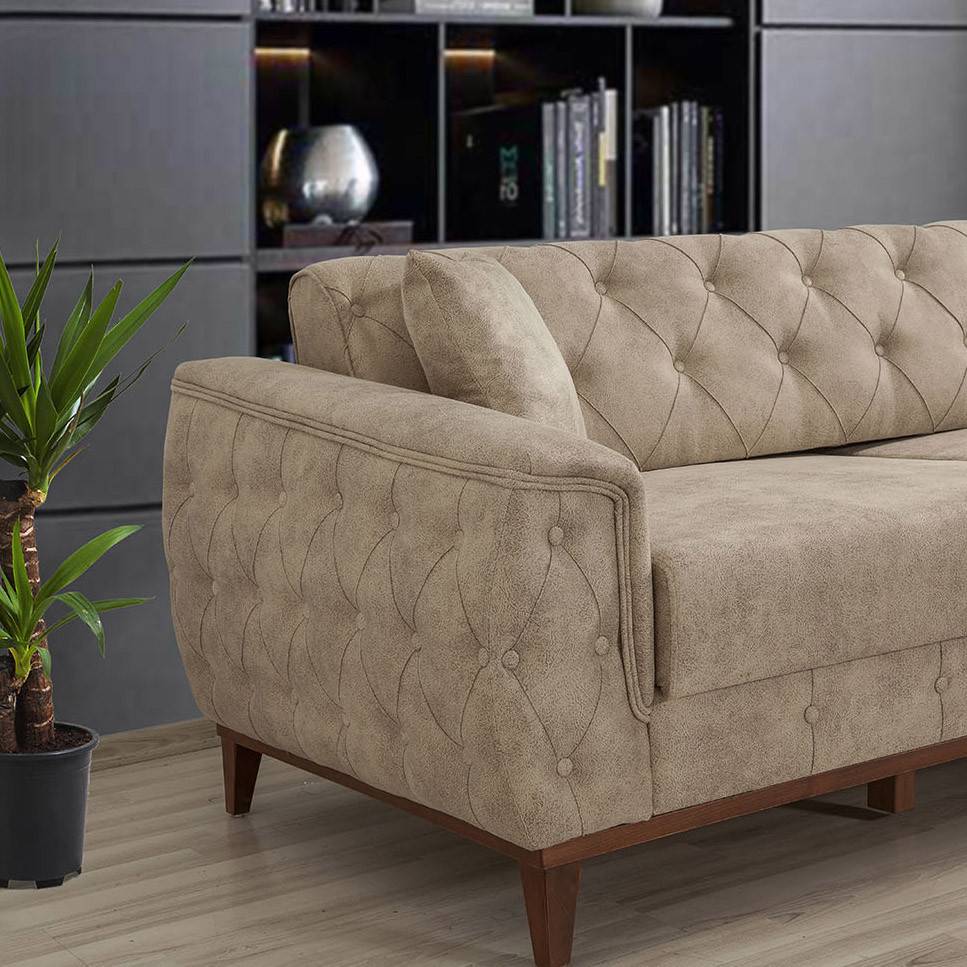 | Libellé | Canapé 3 places convertible avec rangement tissu beige clair Angela 225 cm |