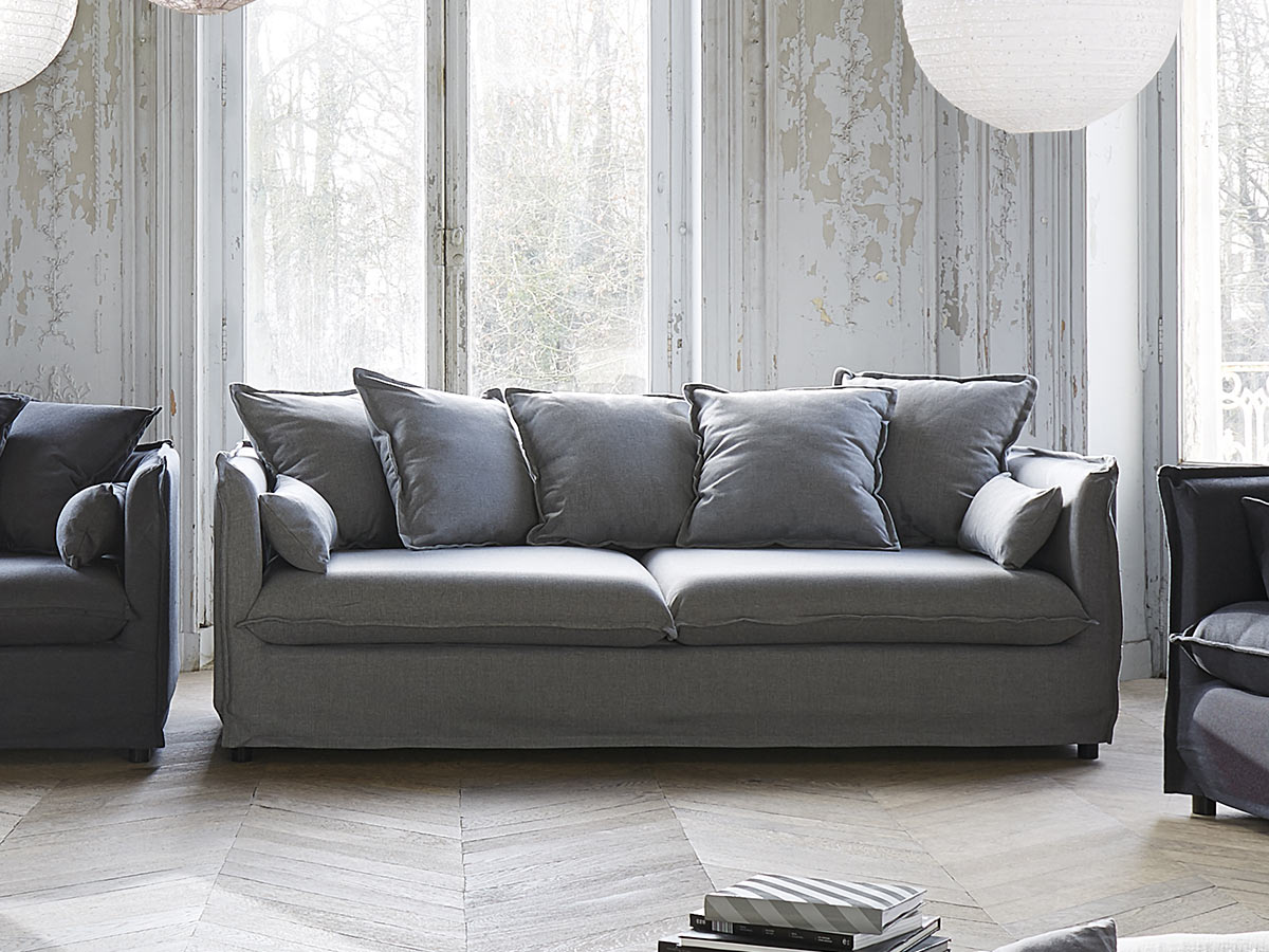 Libérez votre pouvoir déco avec les produits de la marque Atmosphera !Créée en 2011, cette marque propose des articles de décoration d'intérieur tendances et accessibles.Grâce à la grande variété de son offre, Atmosphera permet à chacun de trouver son style et d'exprimer sa créativité.Caractéristiques techniquesCouleur : GrisDimensions (L x l x H) : 210 x 104 x 78 cmHauteur de l'assise : 43 cmMarque : ATMOSPHERAMatière(s) : Bois, mousse, tissu Nombre de places : 3Poids : 63 kgUnivers : Romantique